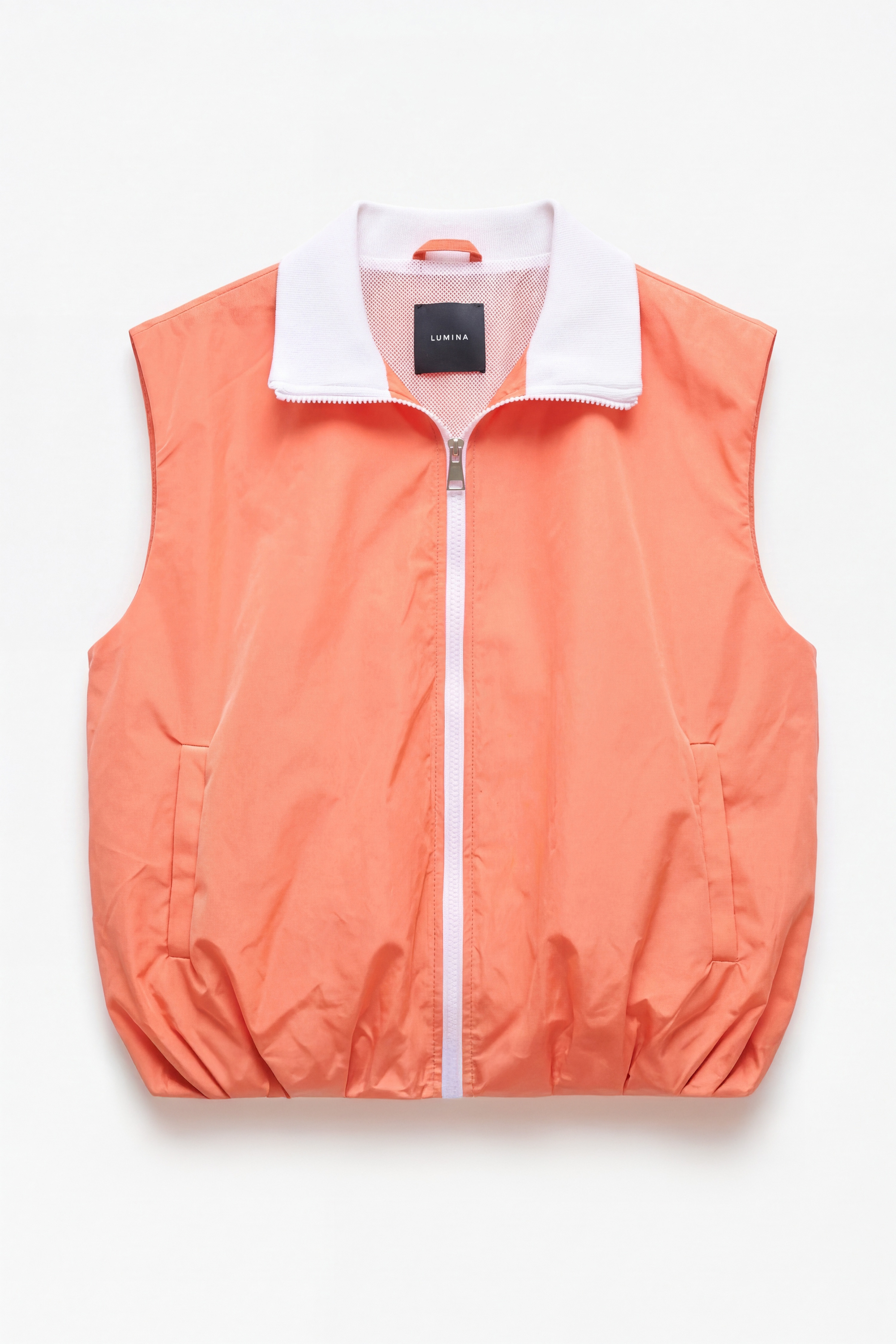 Gilet oversize realizzato in tessuto tecnico leggero.