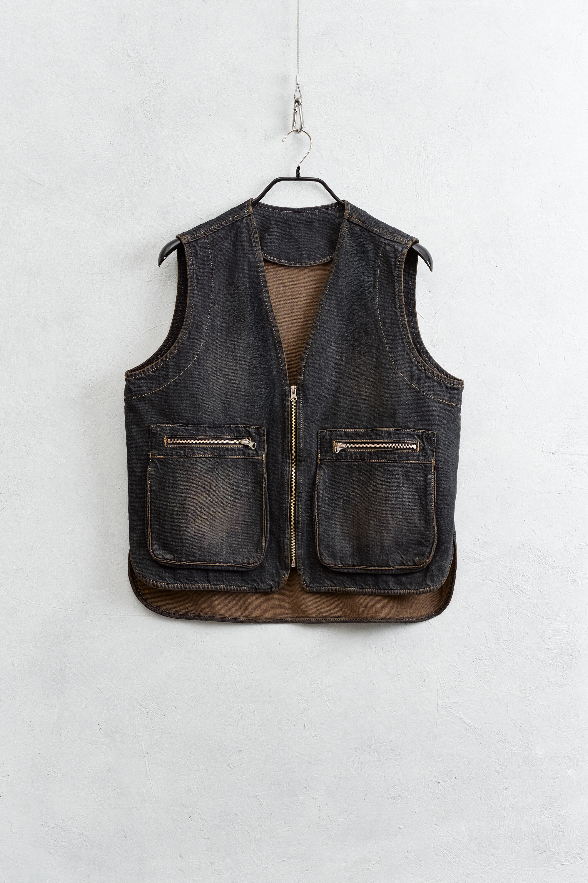 Gilet in denim realizzato in tessuto 100% cotone. Presenta scollo a V e giro-manica. Tasche ampie anteriori con zip. Chiusura frontale con cerniera. Vestibilità oversize, disponibile in taglia UNICA.