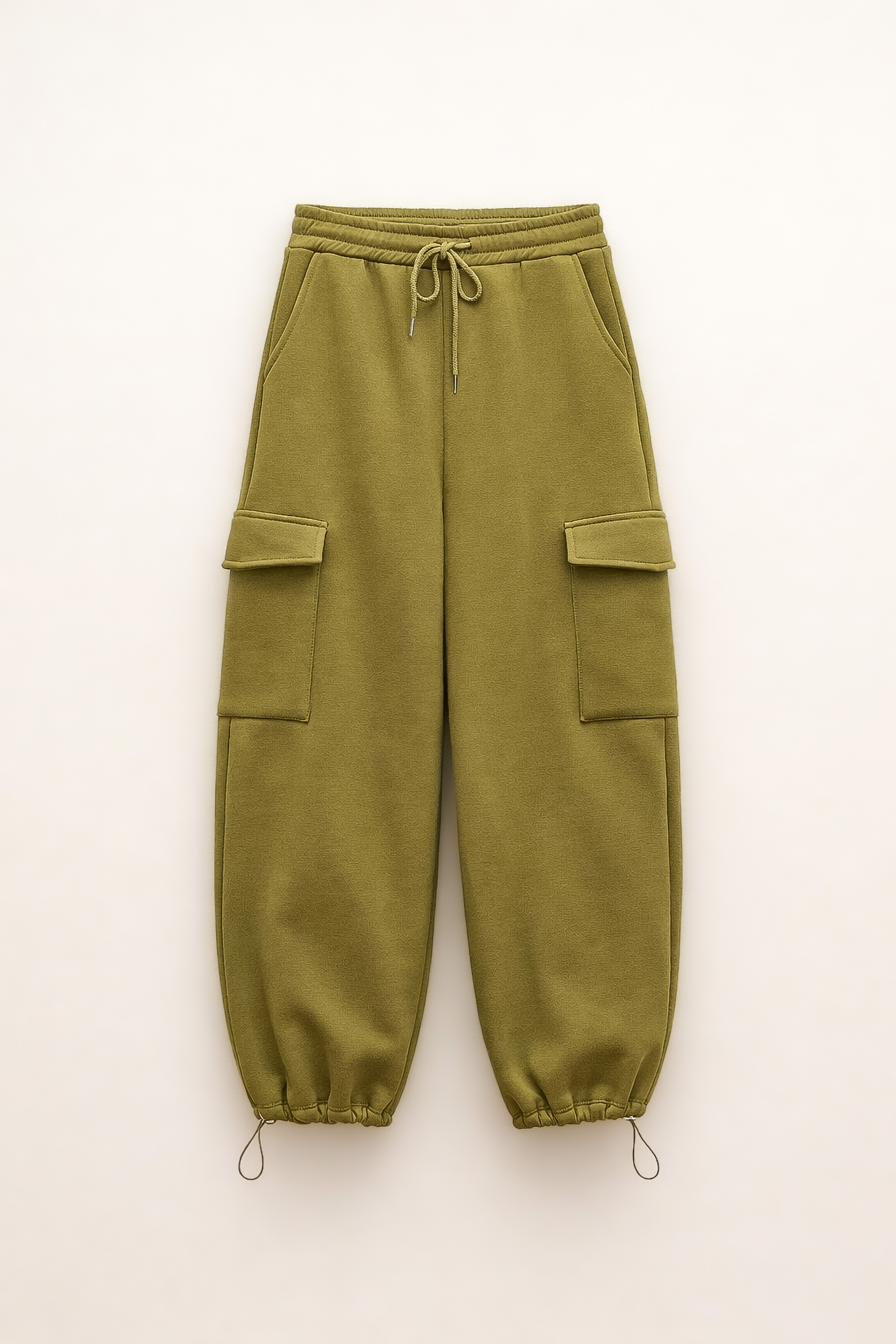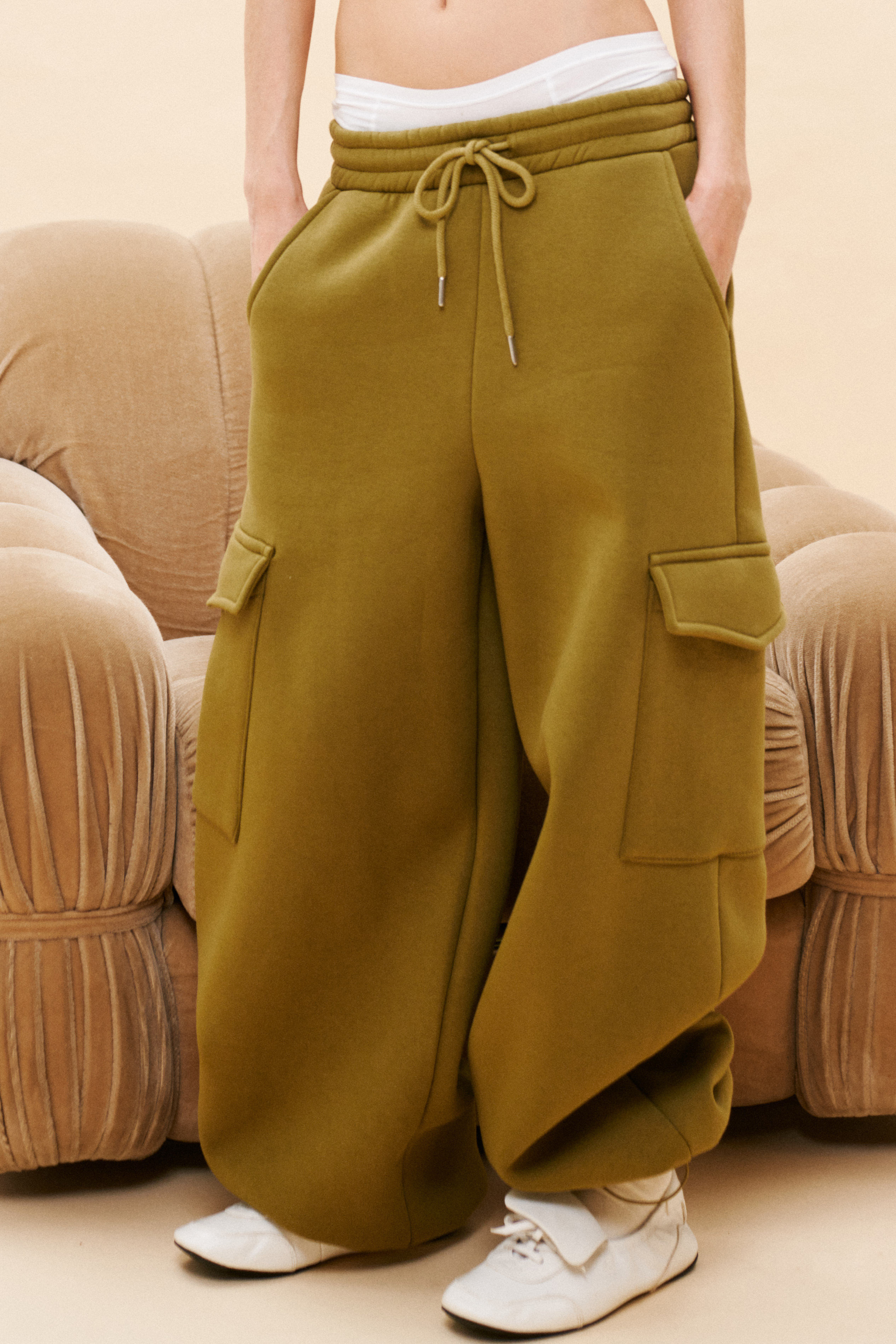 Elastico all'orlo e tasche laterali.