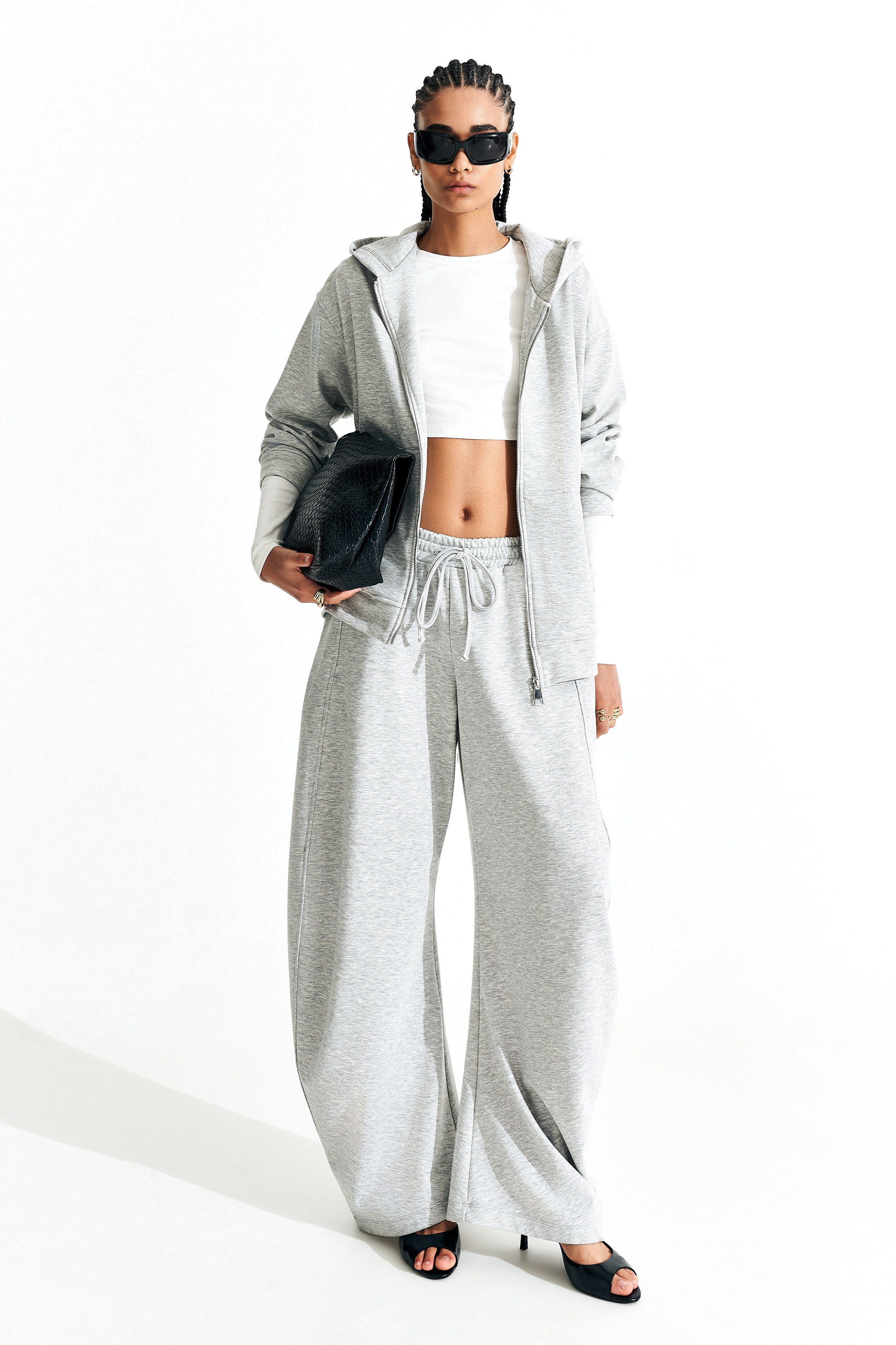 Pantaloni jogger wide-leg in jersey misto viscosa.