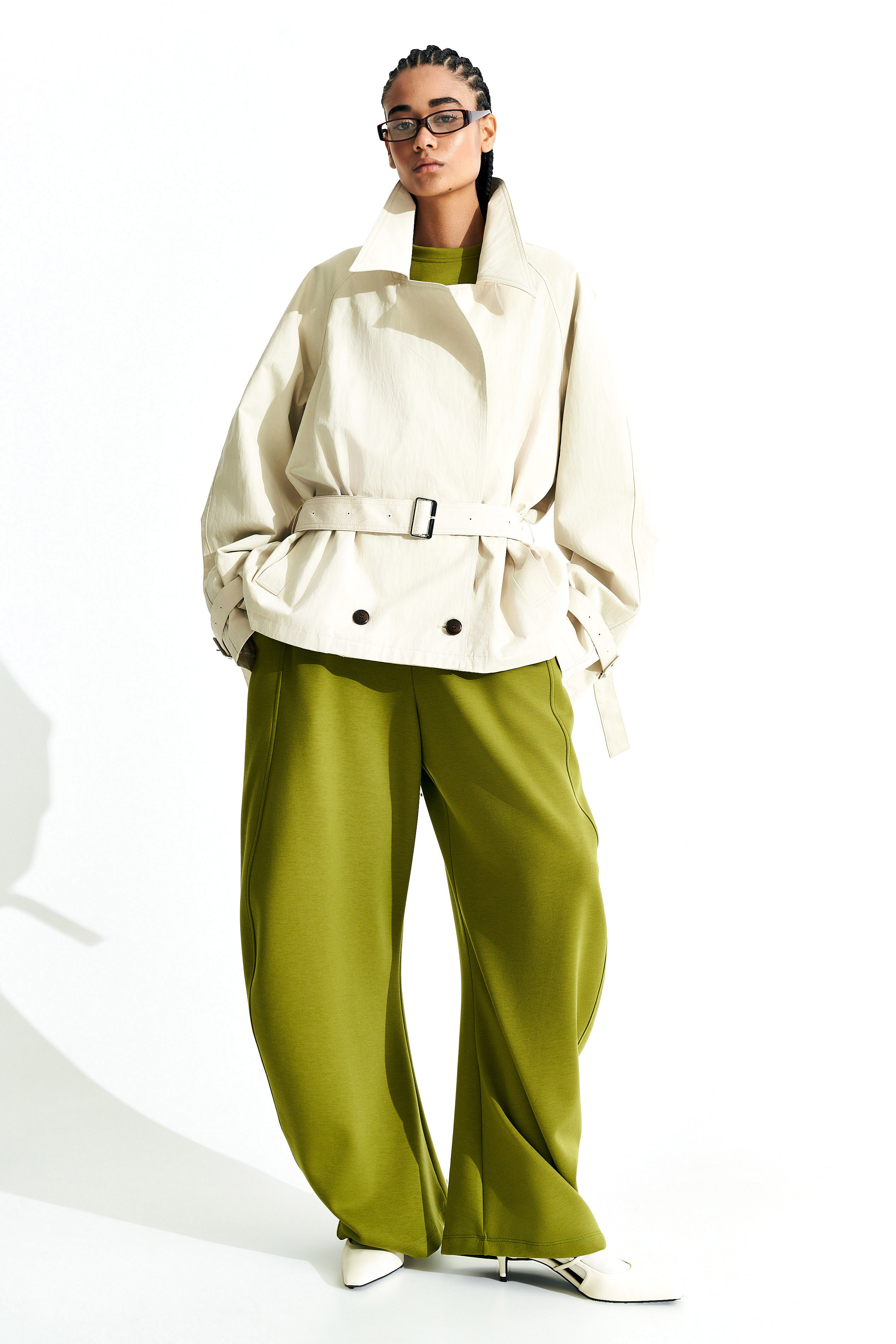Vita elasticizzata. Linea ampia gamba dritta.