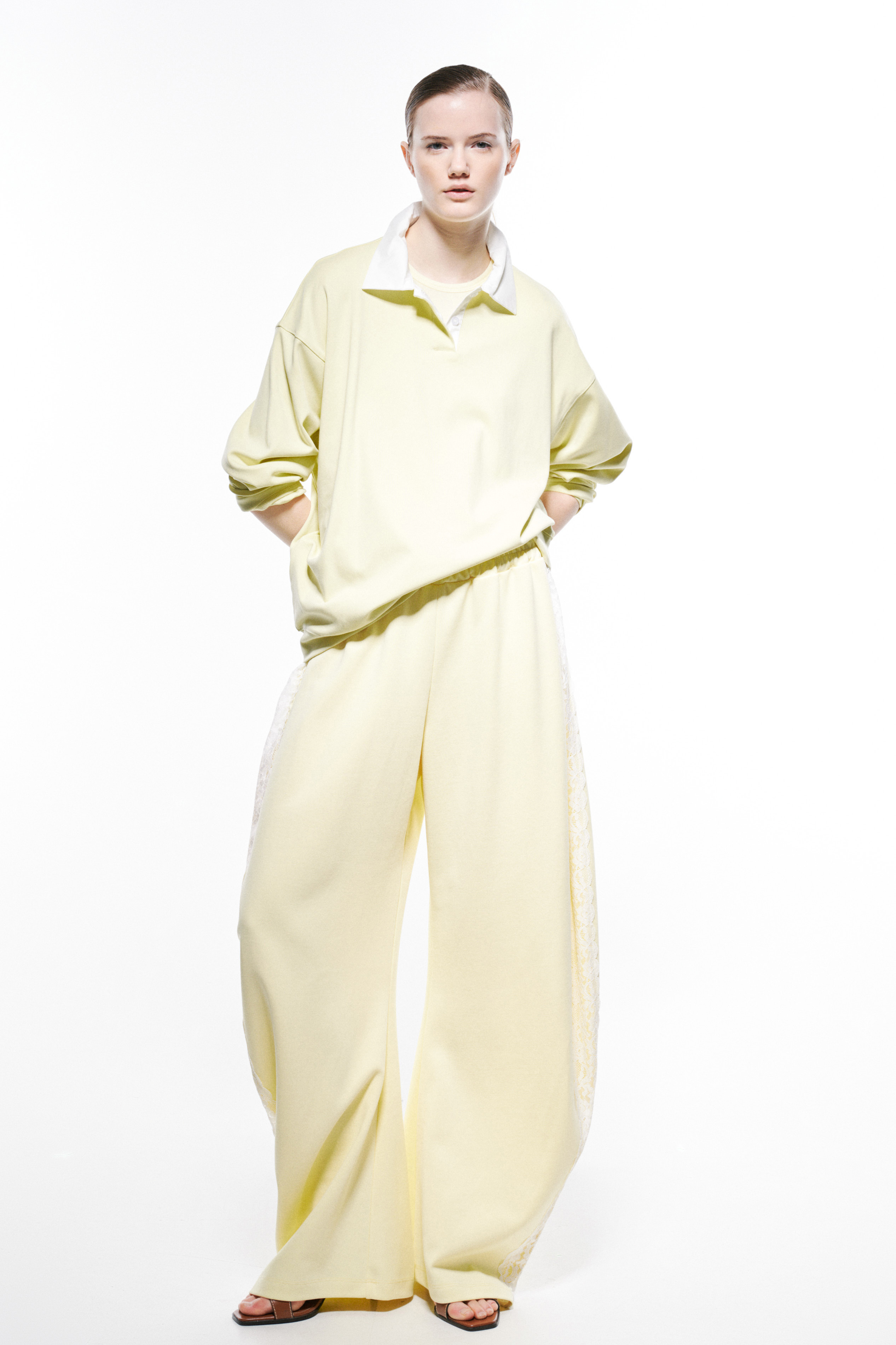 Pantaloni jogger lunghi con inserti laterali in pizzo.