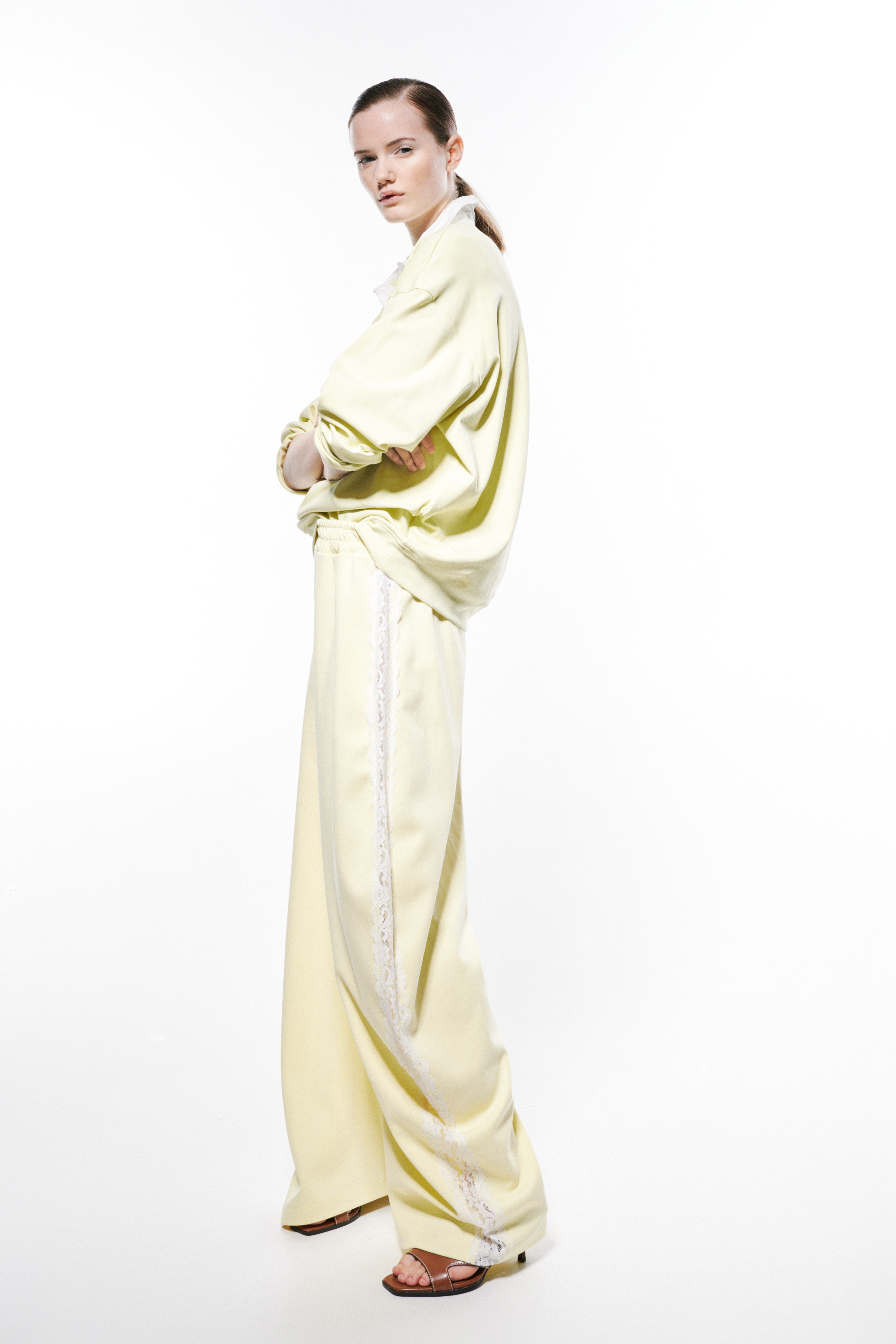 Gamba ampia con fondo elasticizzato.