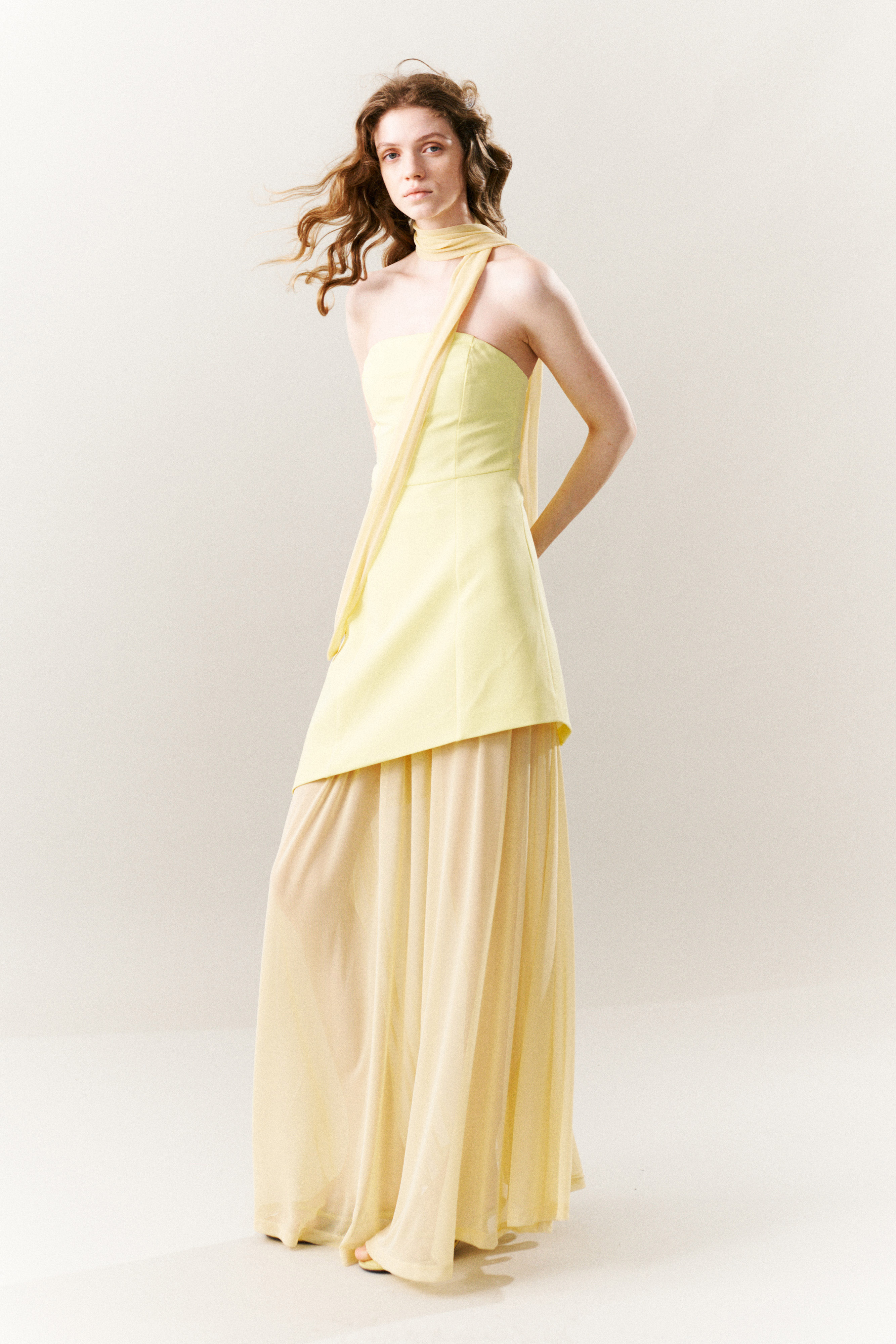 Abito lungo con gonna in tessuto tulle.