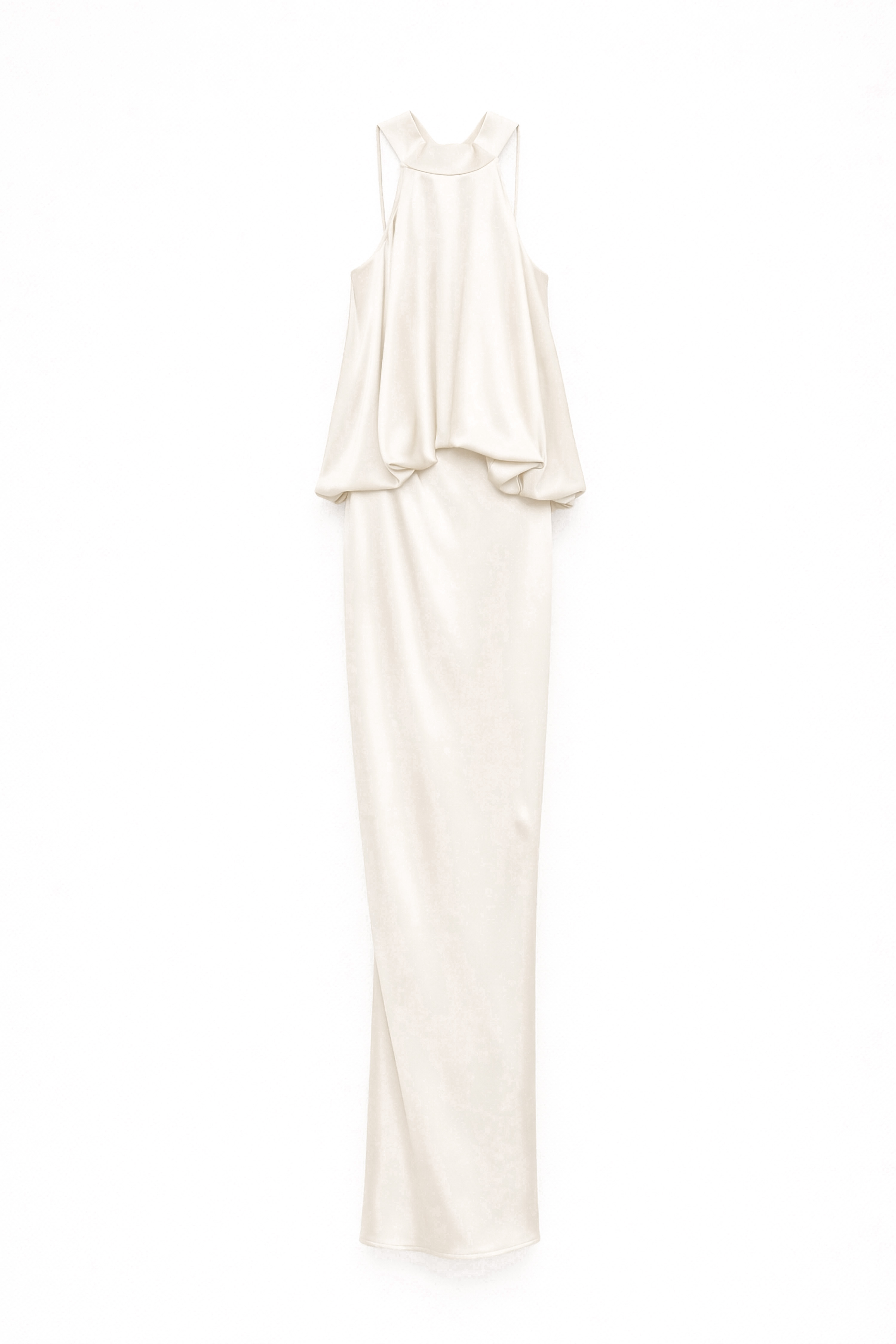 Abito lungo in raso fluido e satinato.