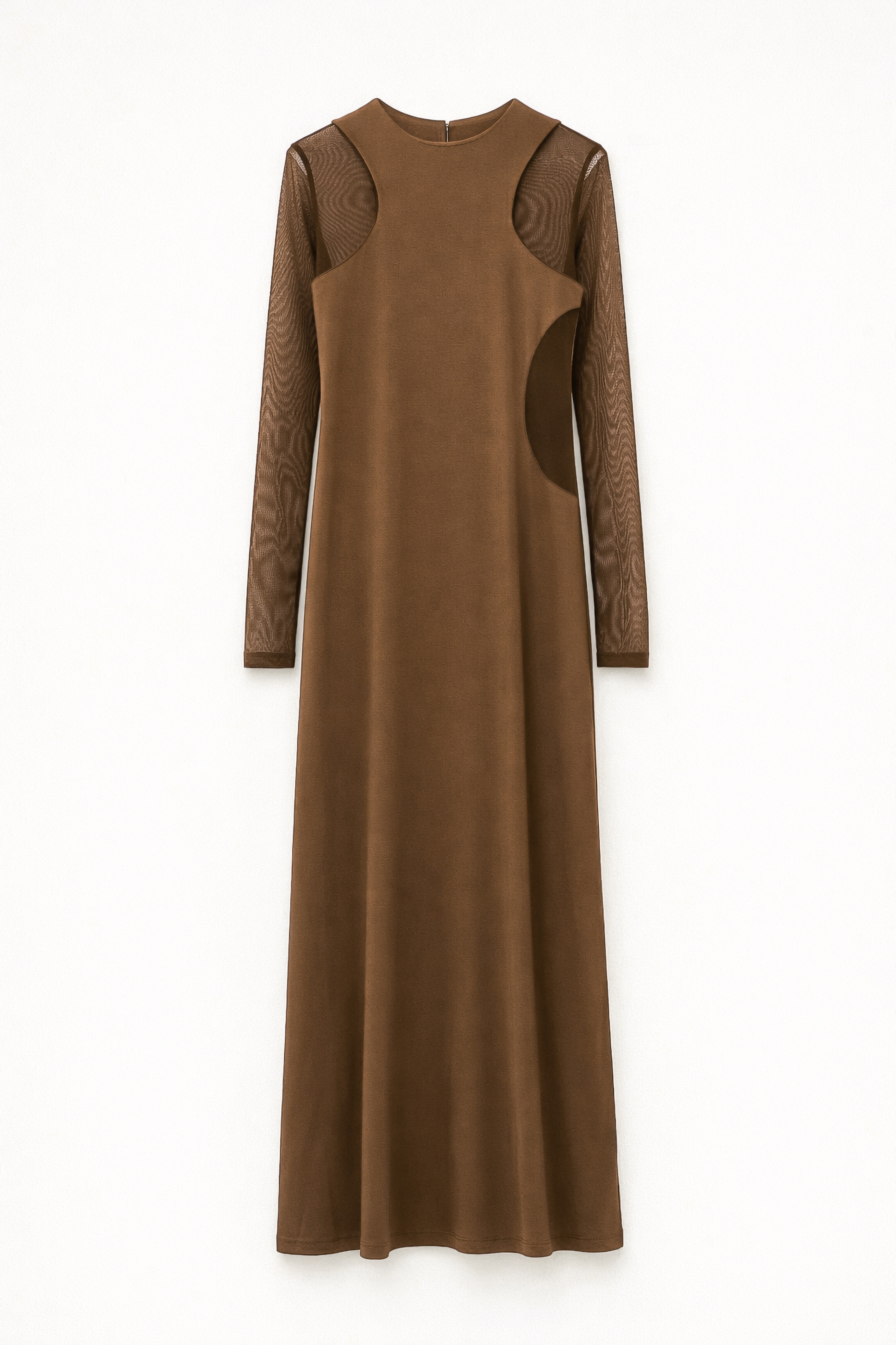 Gonna lunga ampia e fluida con arricciatura in vita.