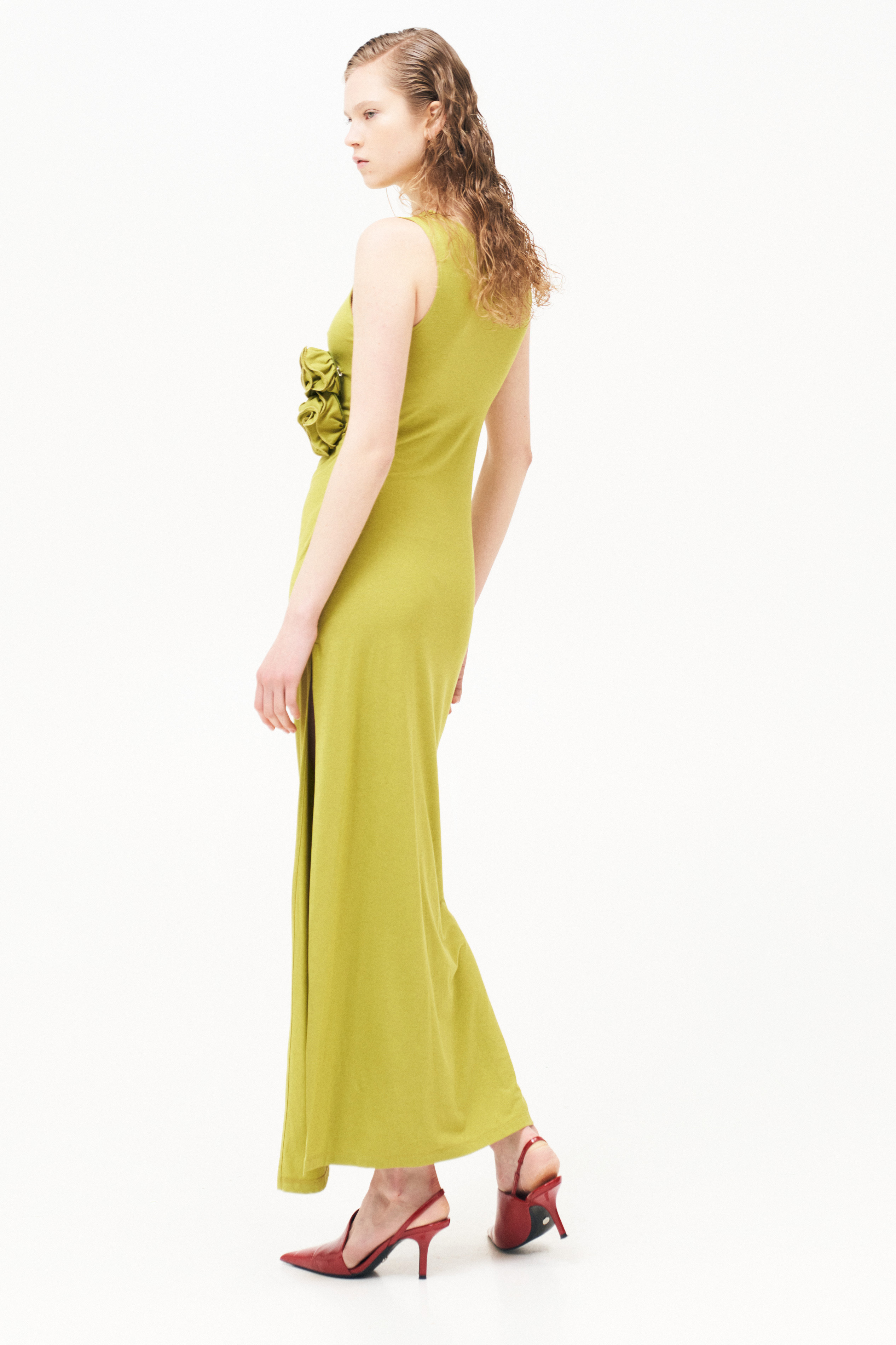 Abito lungo con scollo a V sul davanti.