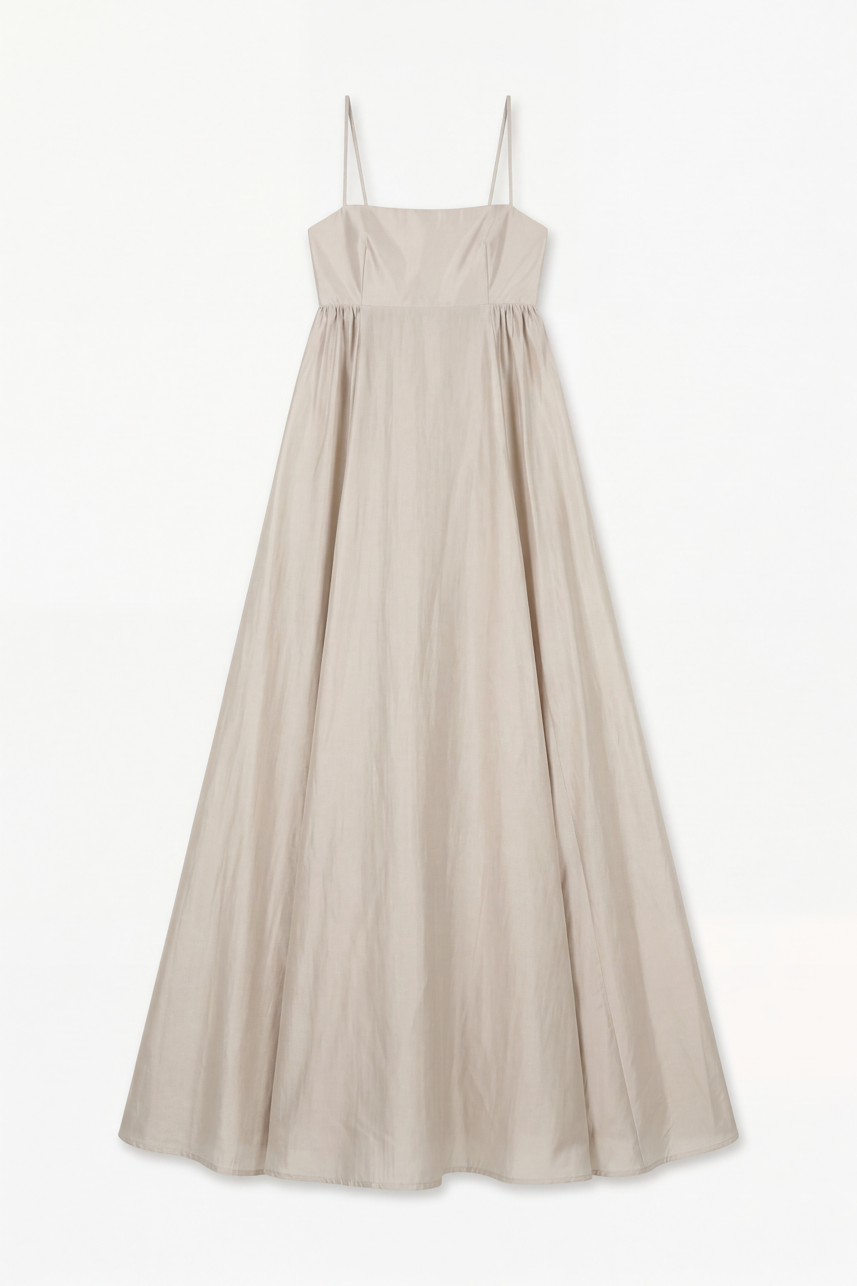 Gonna lunga ampia e fluida con arricciatura in vita.