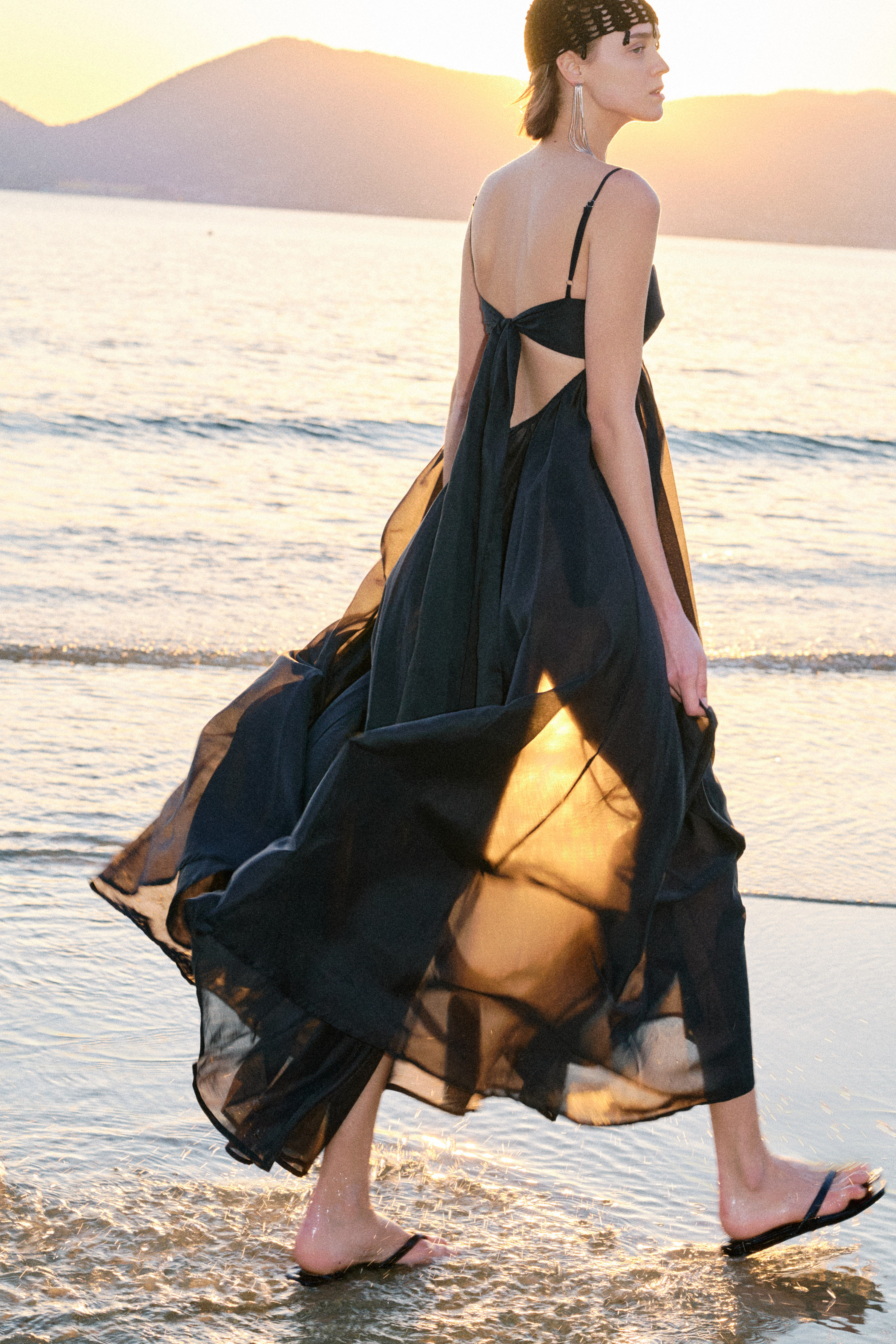 Dettaglio maxi fiocco posteriore con apertura sulla schiena.