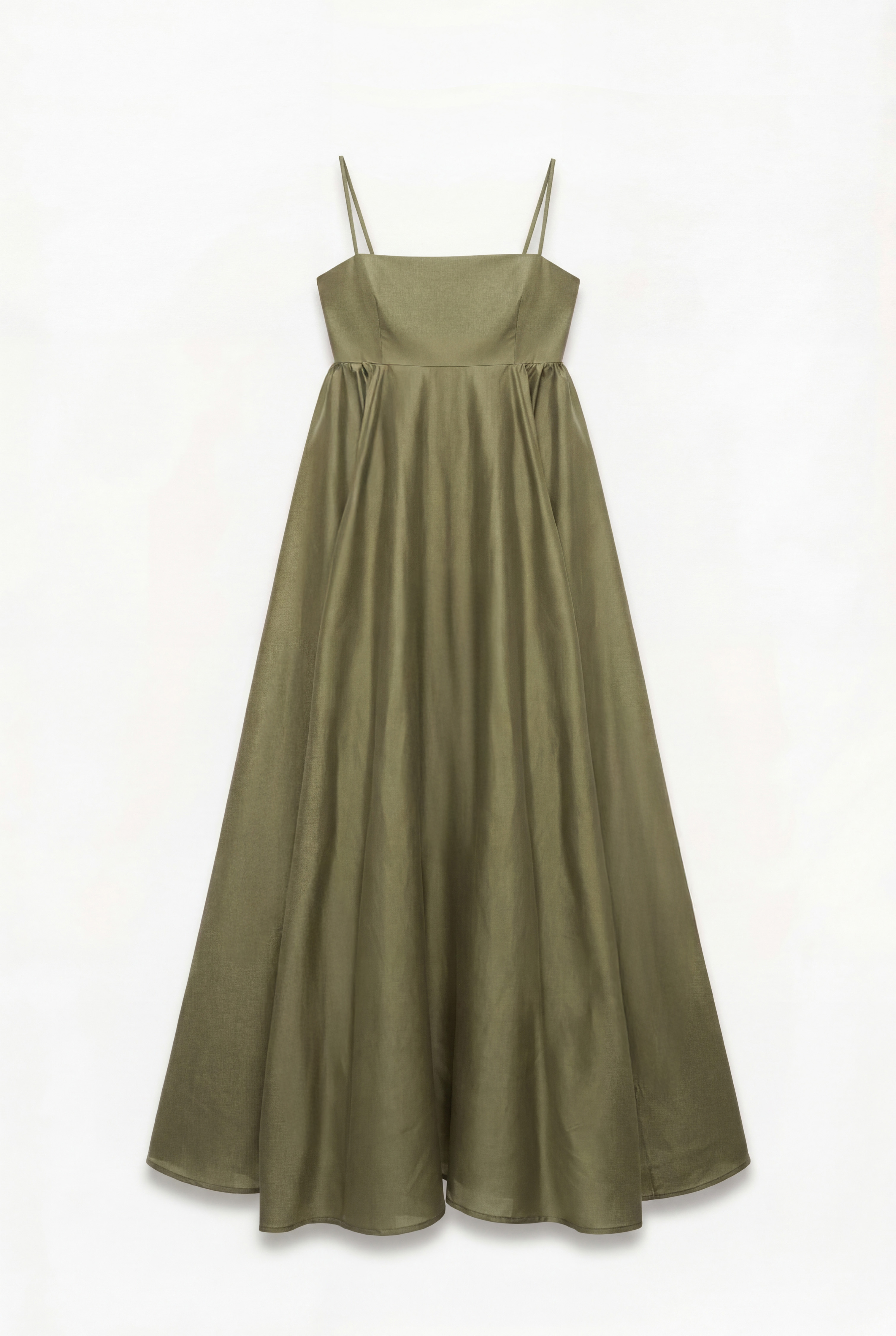 Gonna lunga ampia e fluida con arricciatura in vita.