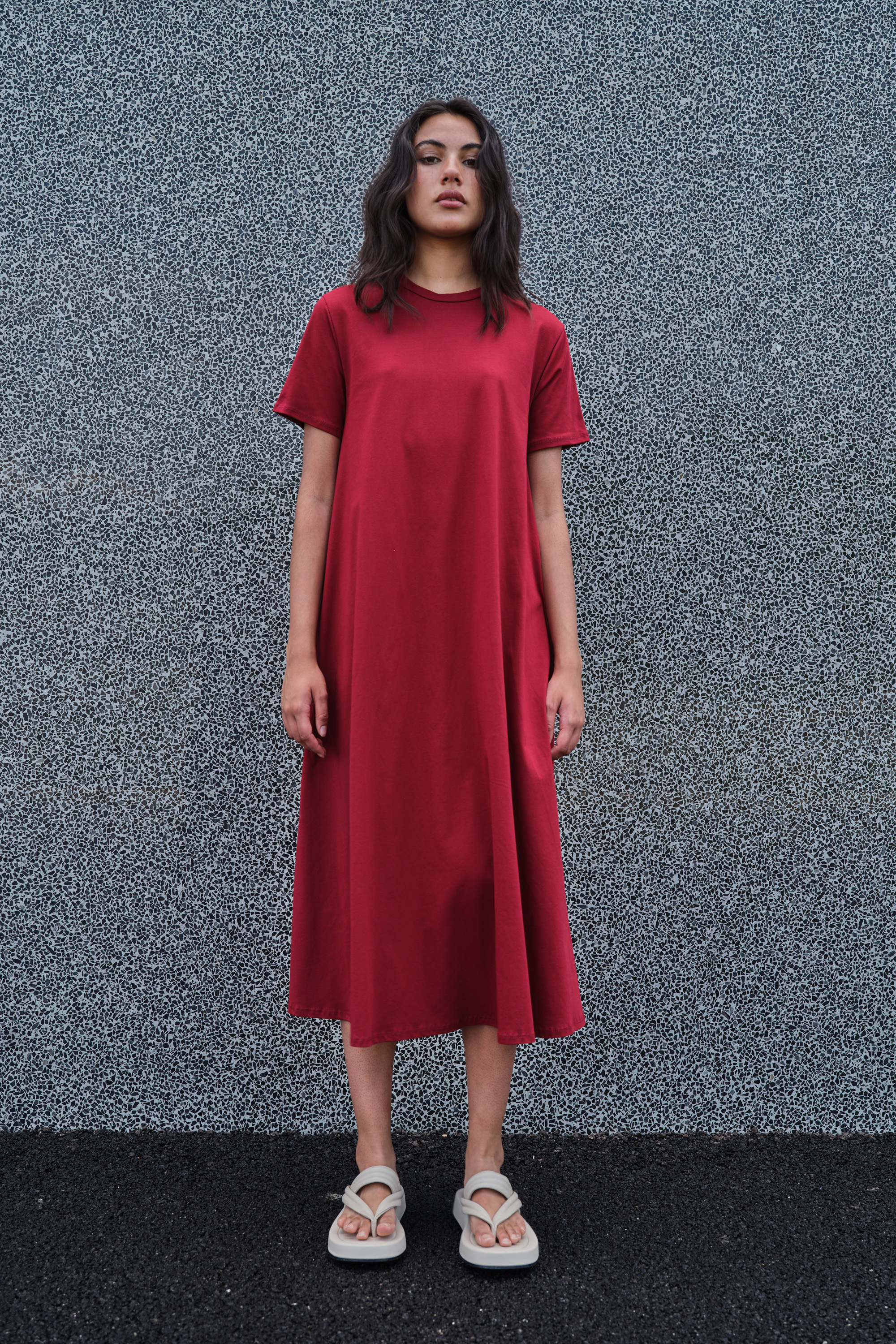 Gonna lunga ampia e fluida con arricciatura in vita.
