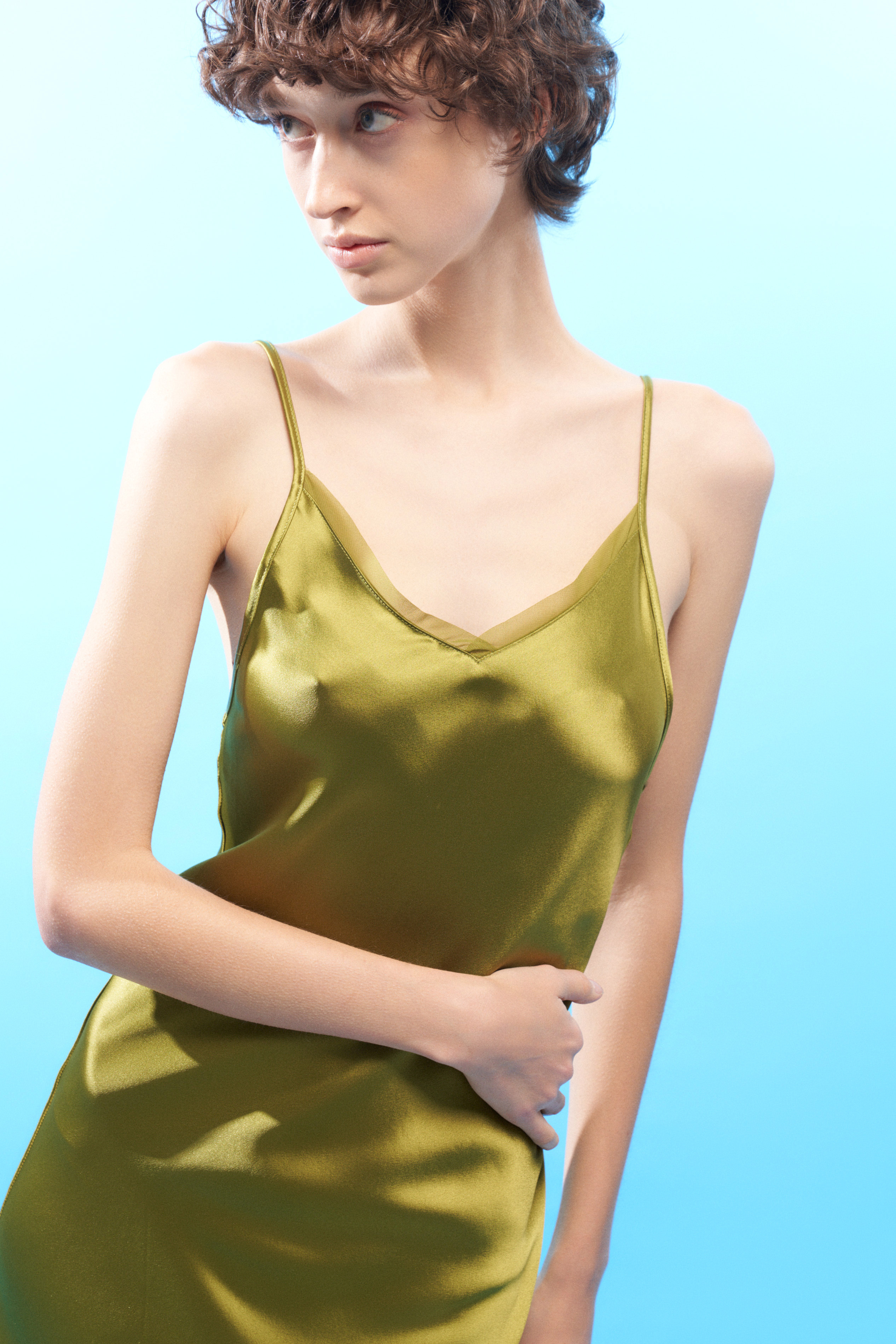 Scollo ampio con spalline sottili.