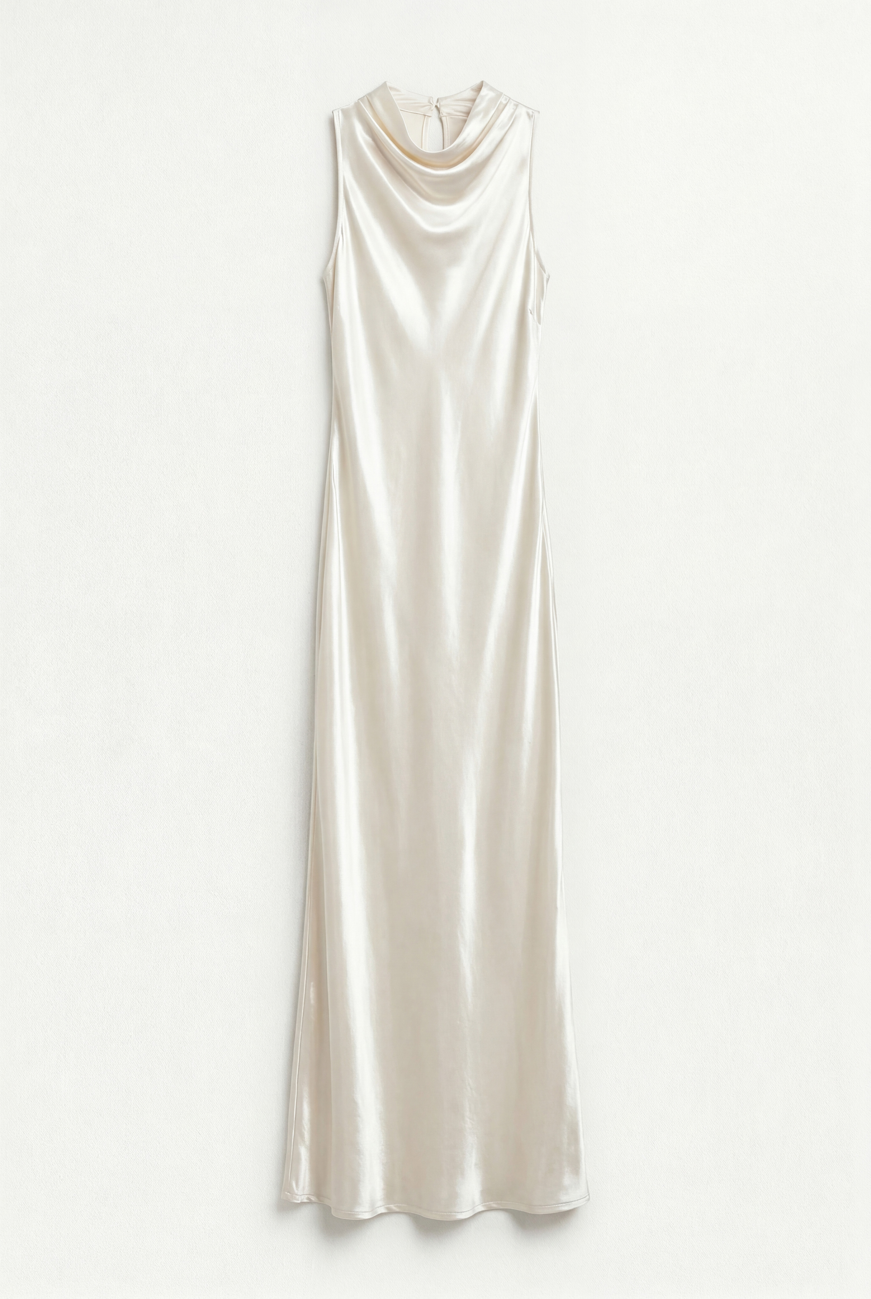 Abito lungo in raso fluido e satinato.