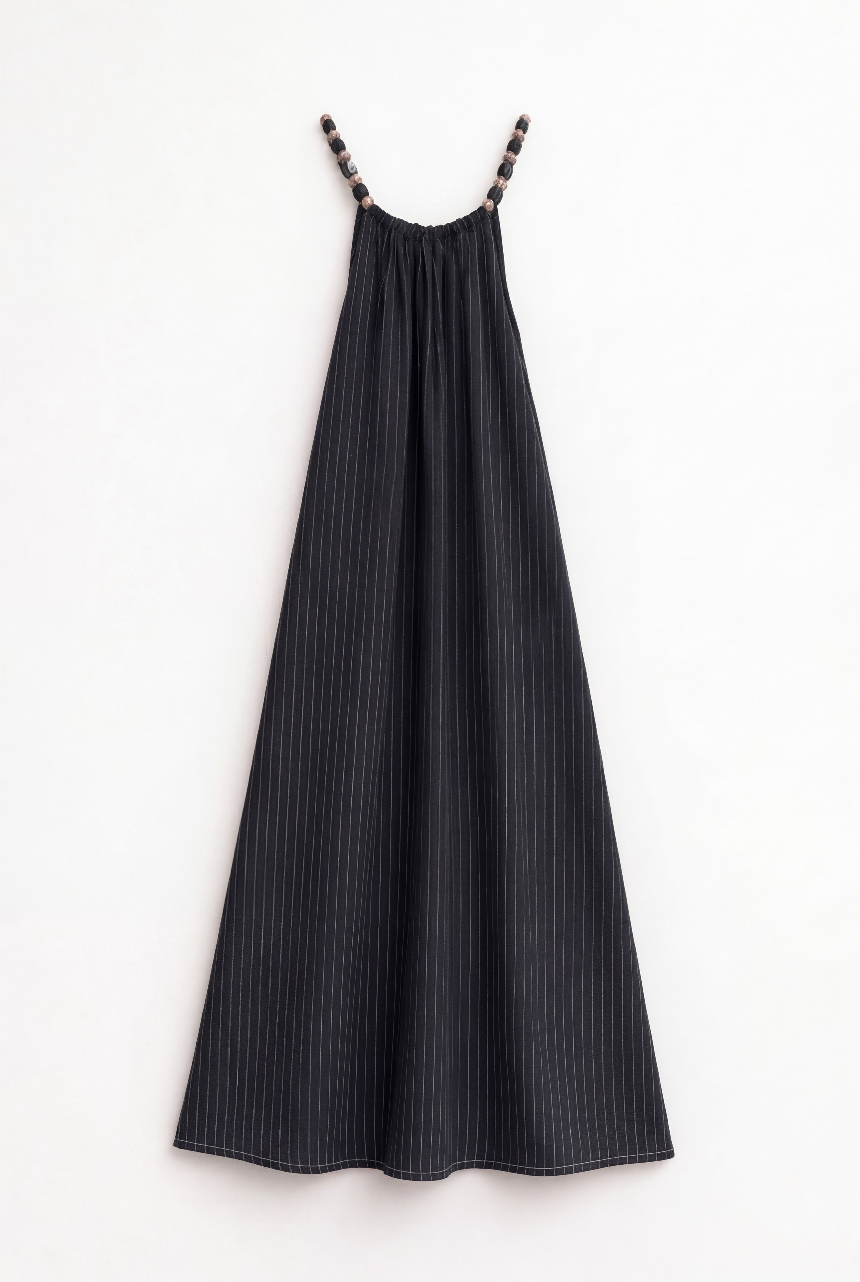 Abito lungo con scollo dritto con spalline sottili in misto lino.
