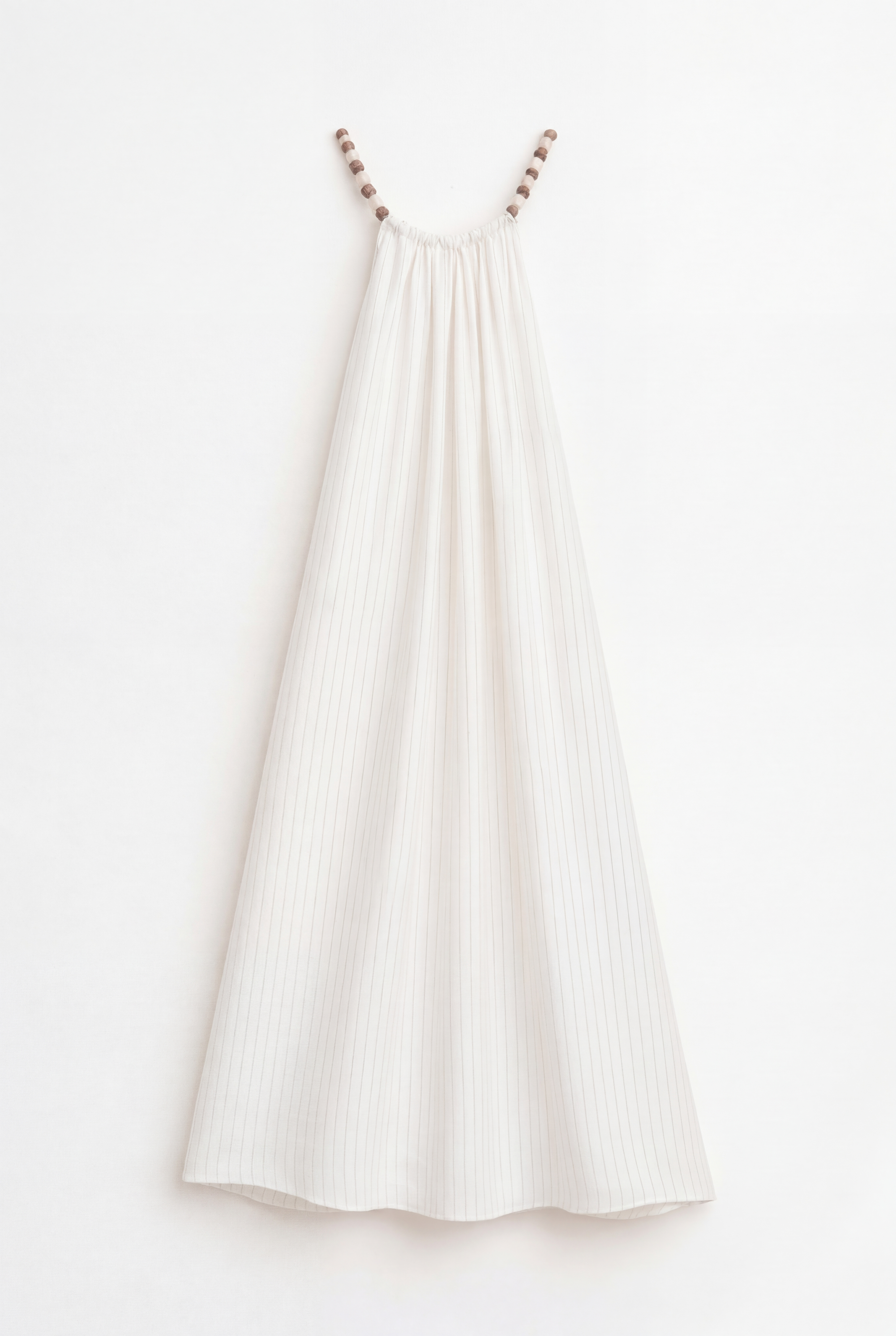 Abito lungo con scollo dritto con spalline sottili in misto lino.