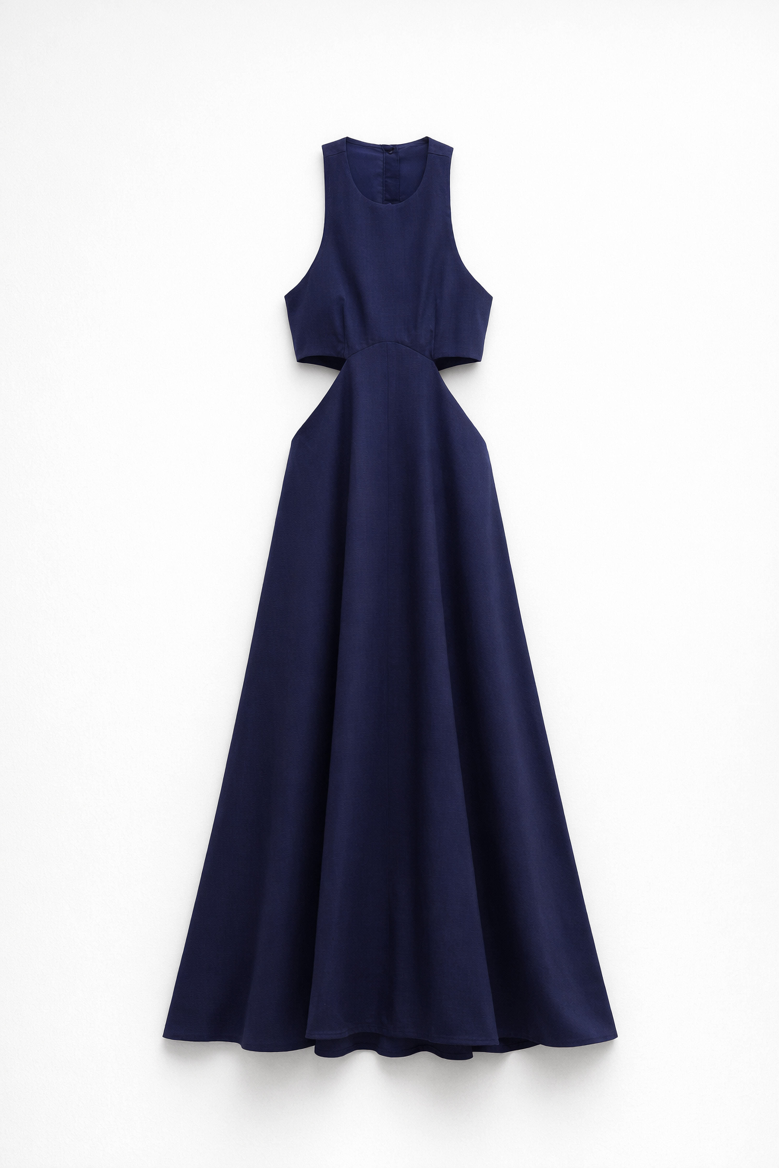 Dettaglio cut-out sul retro in vita e fiocco regolabile.