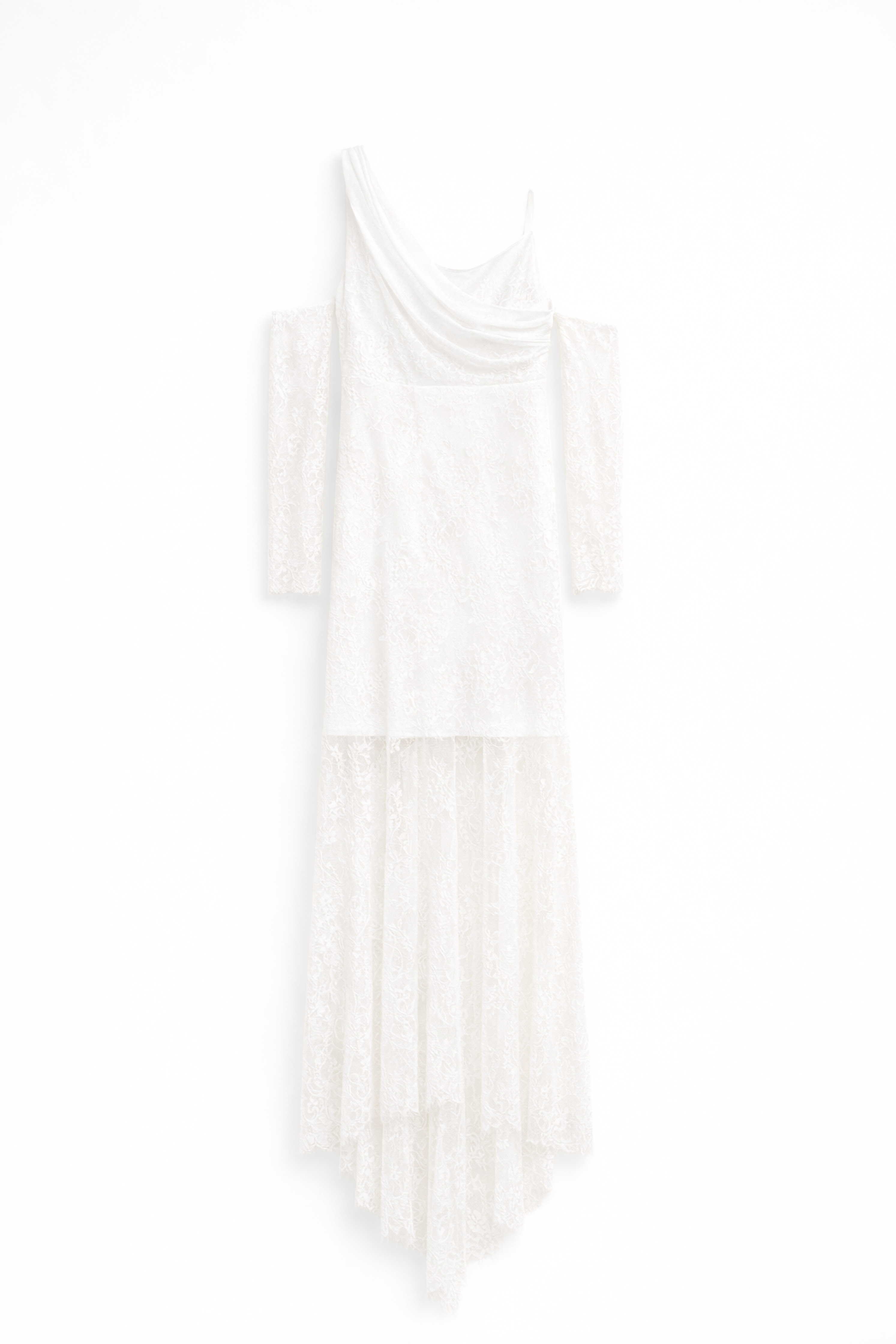 Abito lungo con tessuto in rete con applicazione di paillettes.