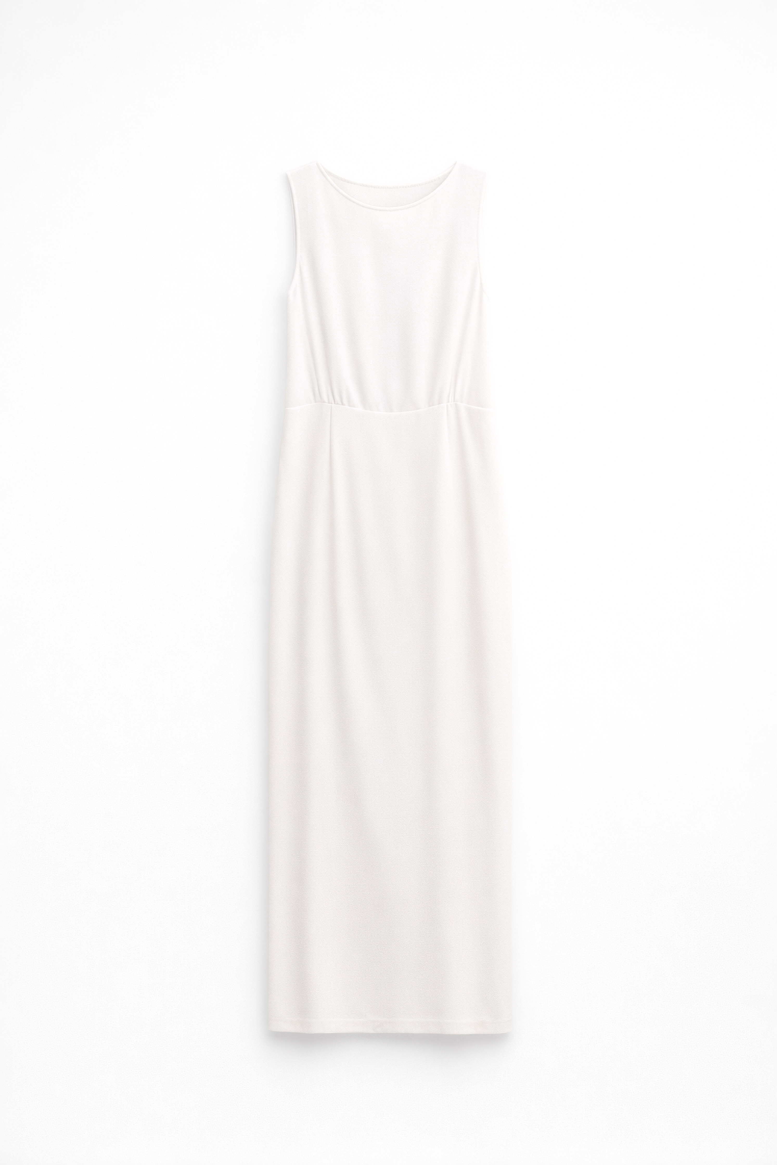 Abito lungo in tessuto leggero misto lino. Scollo rotondo sul davanti. Senza maniche. Scollo profondo sul retro con chiusura a bottone. Chiusura con zip invisibile posteriore. Vestibilità regolare, disponibile in taglia S/M, M/L.