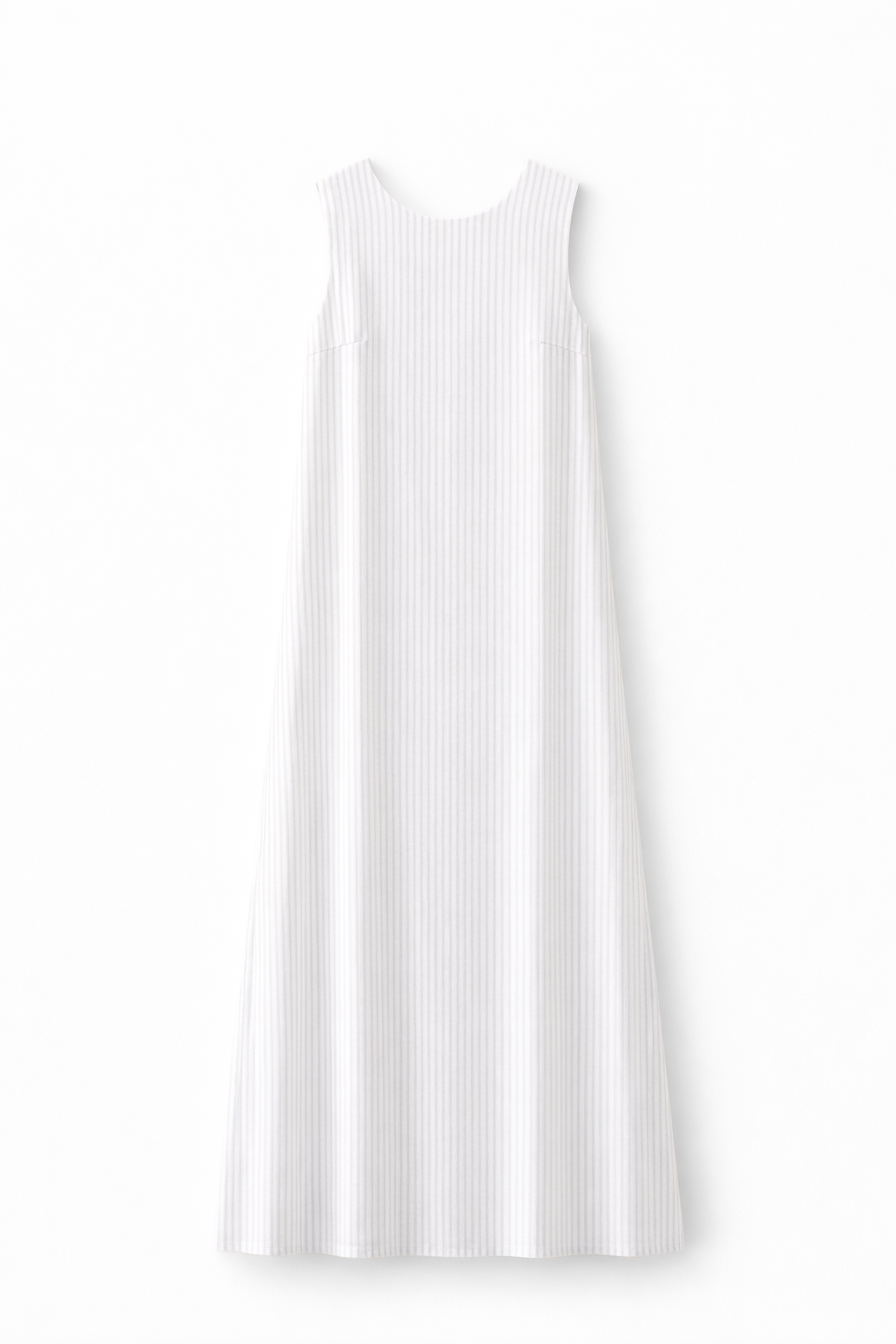 Abito lungo in tessuto leggero misto lino. Scollo rotondo sul davanti. Senza maniche. Scollo profondo sul retro con chiusura a bottone. Chiusura con zip invisibile posteriore. Vestibilità regolare, disponibile in taglia S/M, M/L.