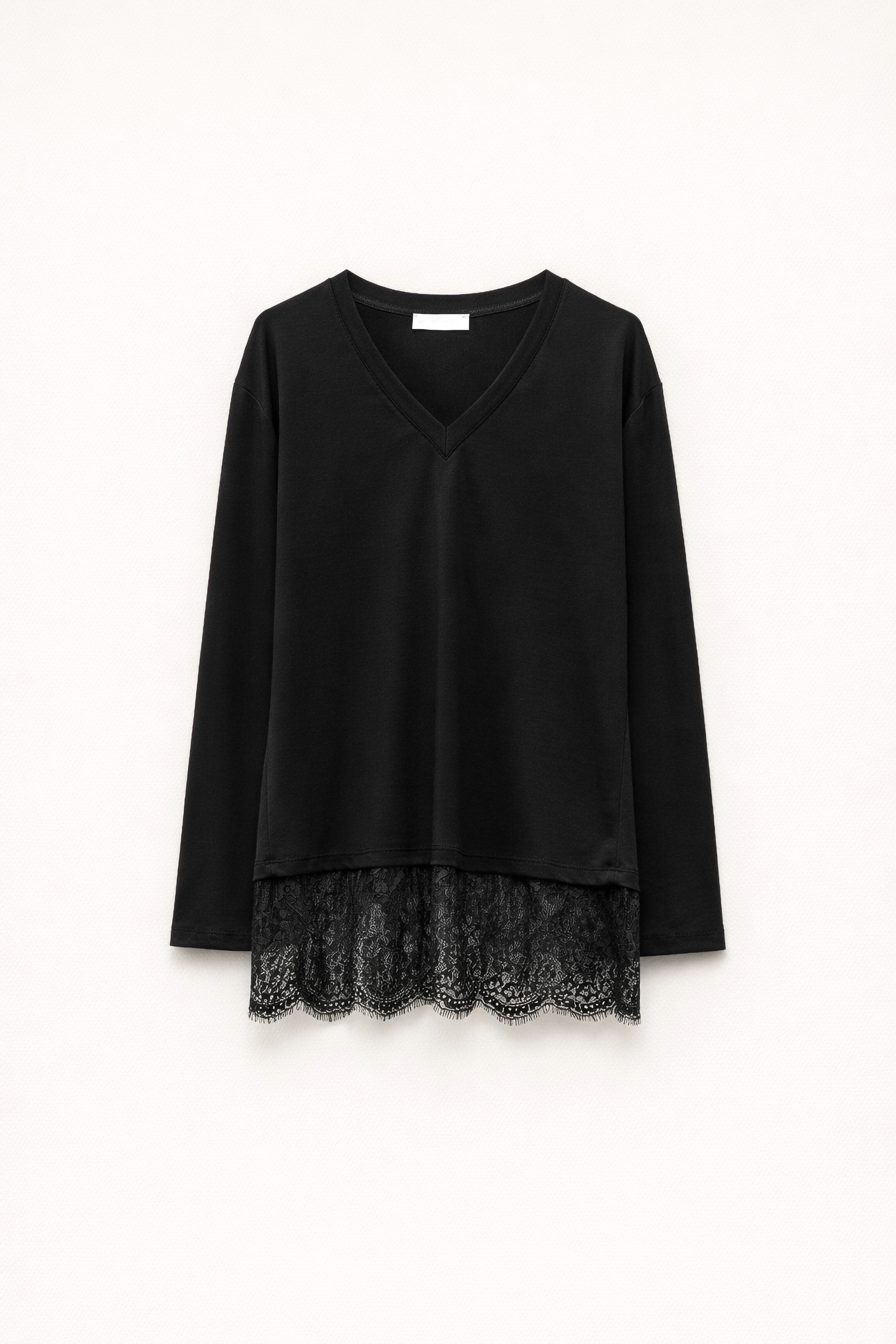 Dettaglio scollo a U ampio con inserto in pizzo.