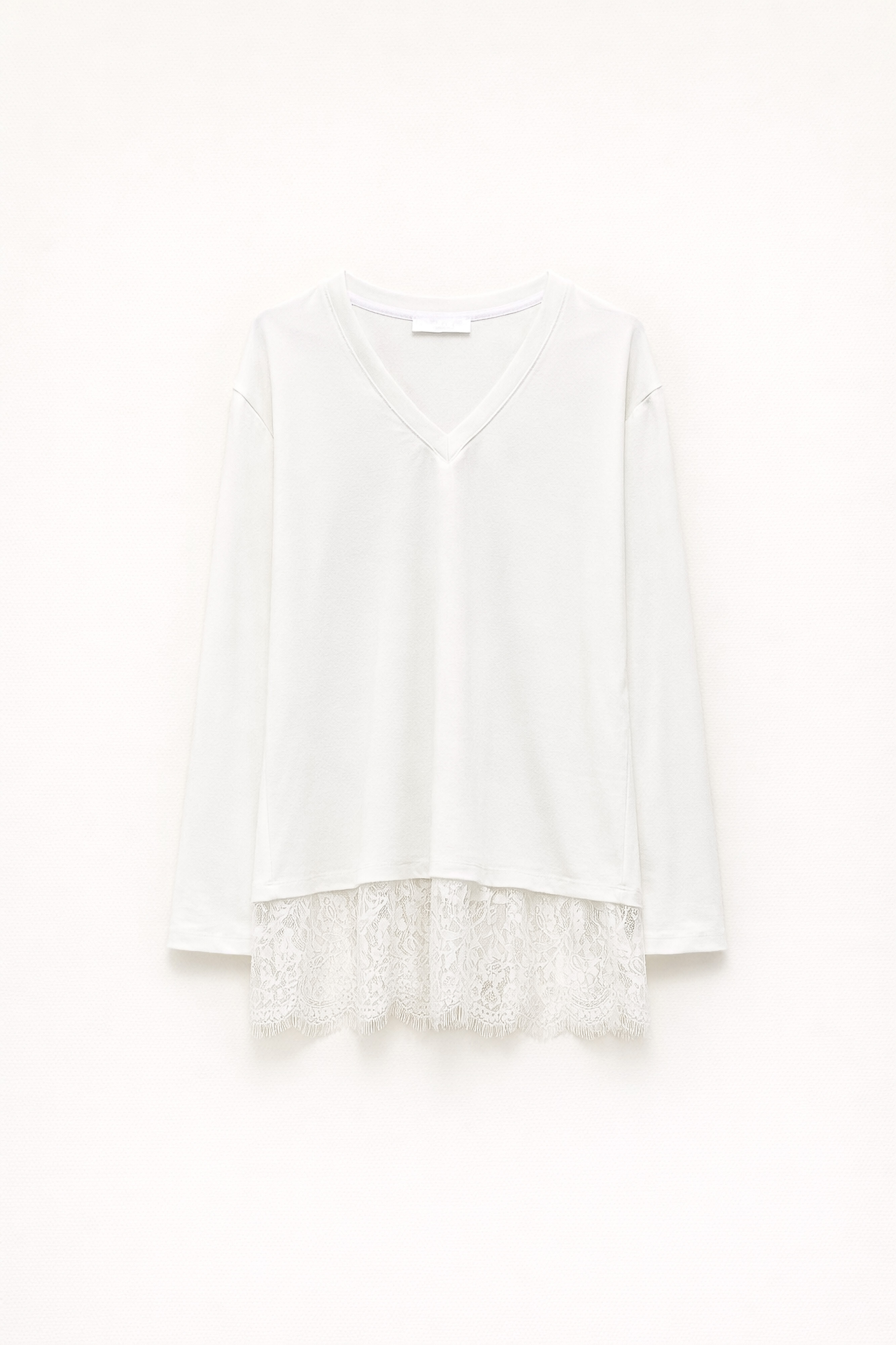 Dettaglio scollo a U ampio con inserto in pizzo.