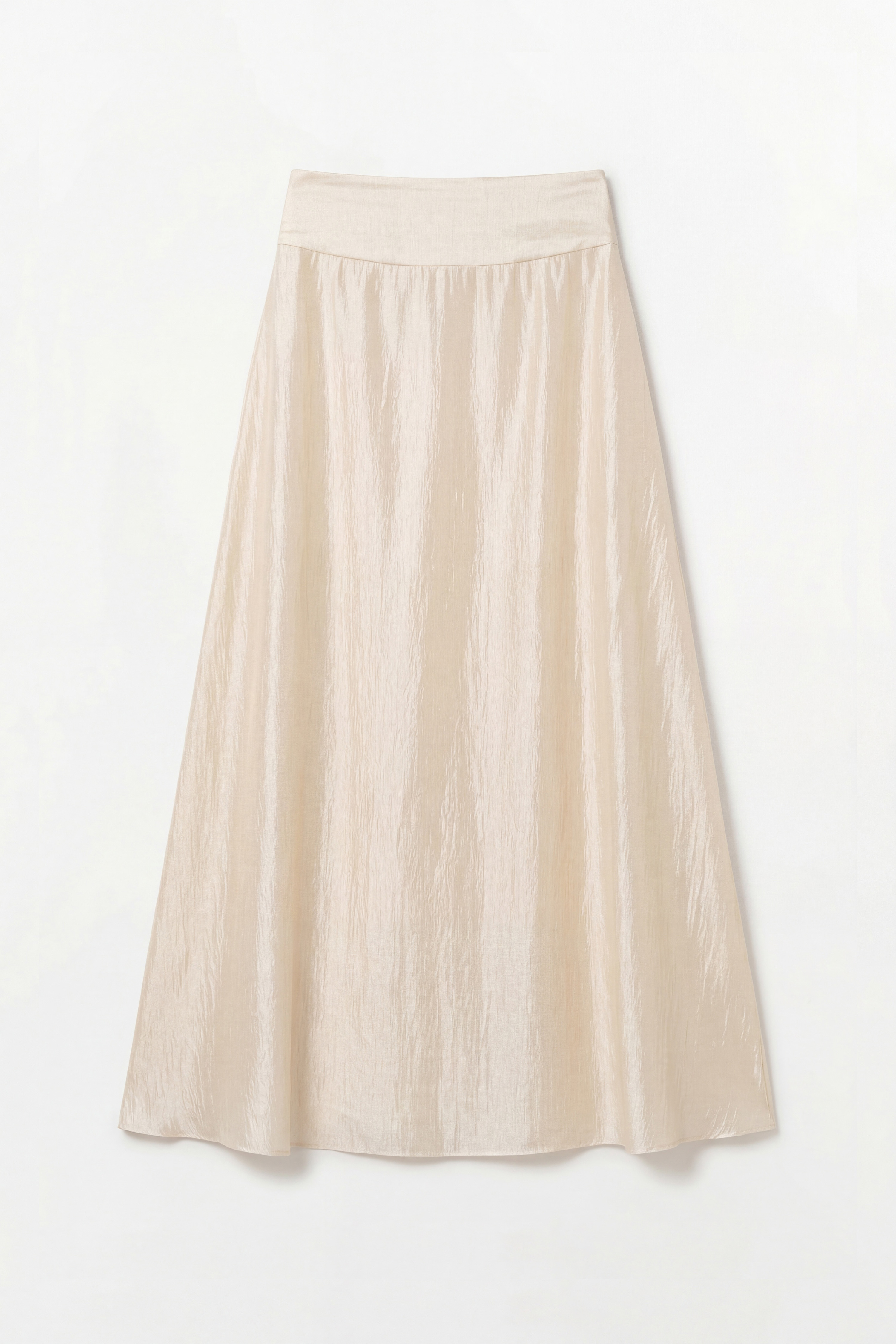 Vita alta con fascia liscia frontale. Spacco laterale sul fondo.