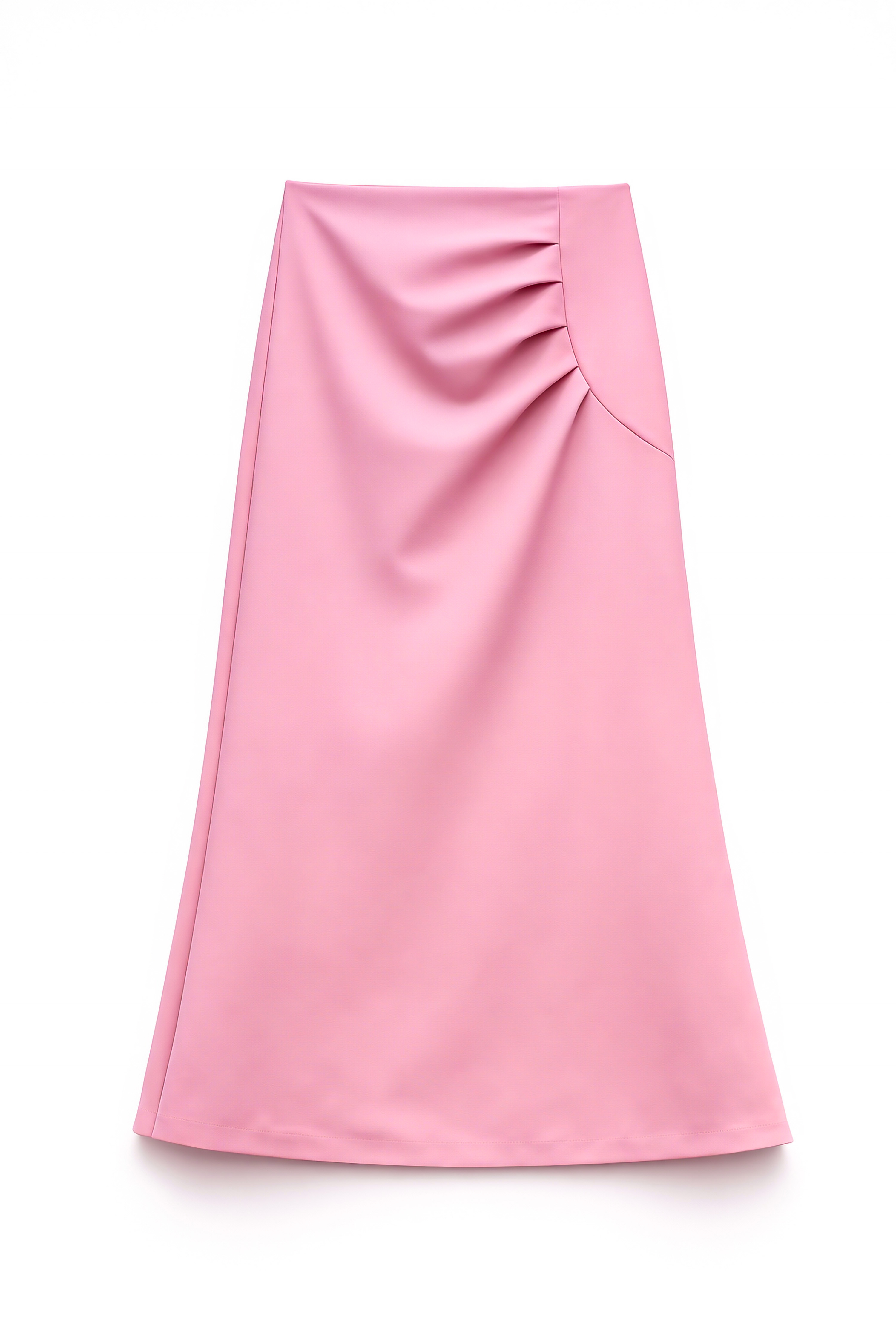 Gonna midi in tessuto misto lyocell. Vita alta con elastico arricciato. Tasche laterali inserite nei fianchi. Linea ampia e leggermente svasata. Vestibilità regolare, disponibile in taglia S/M, M/L.