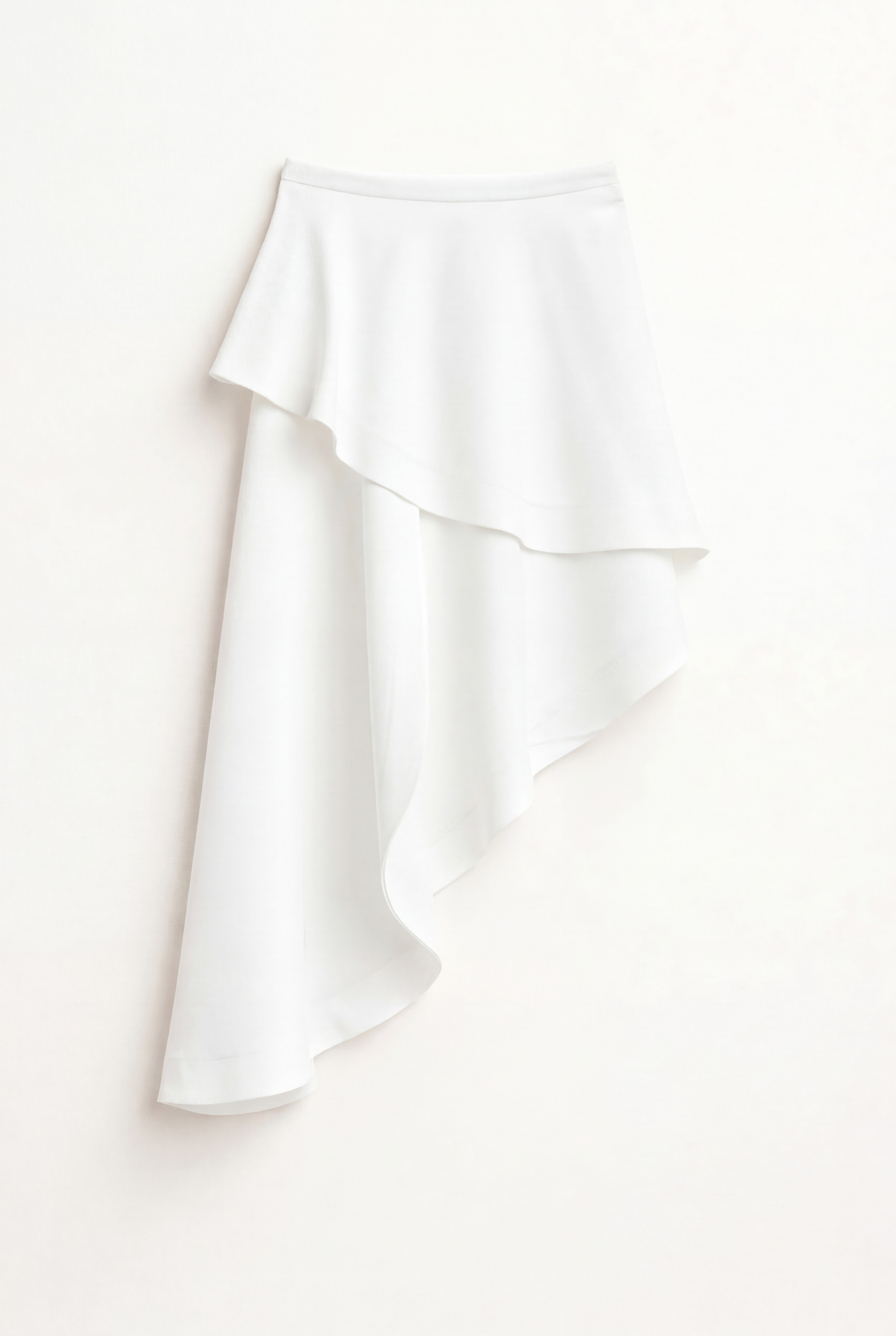 Fondo asimmetrico. Orlo smerlato rifinito.