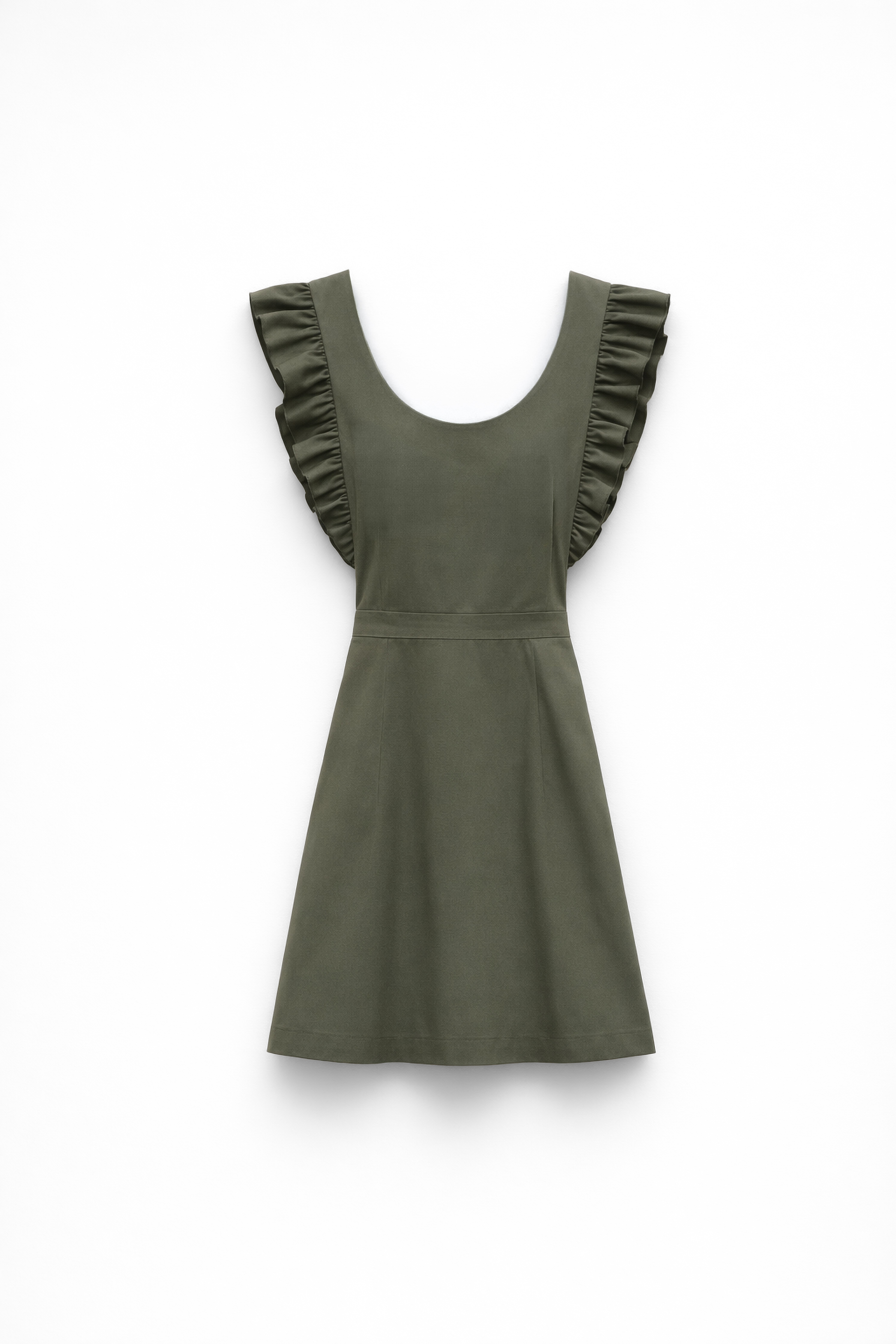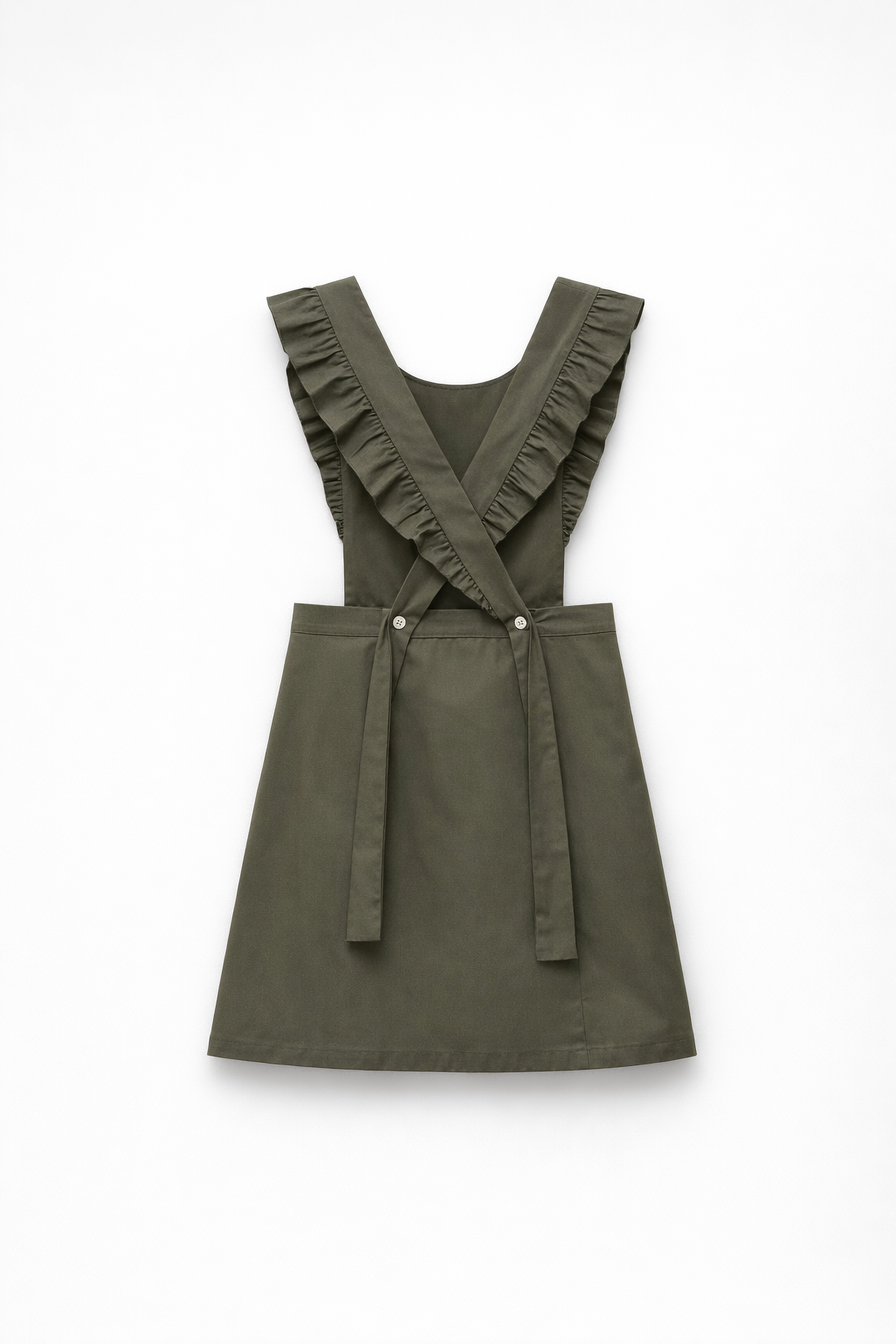 Abito grembiule in tessuto di cotone elasticizzato.