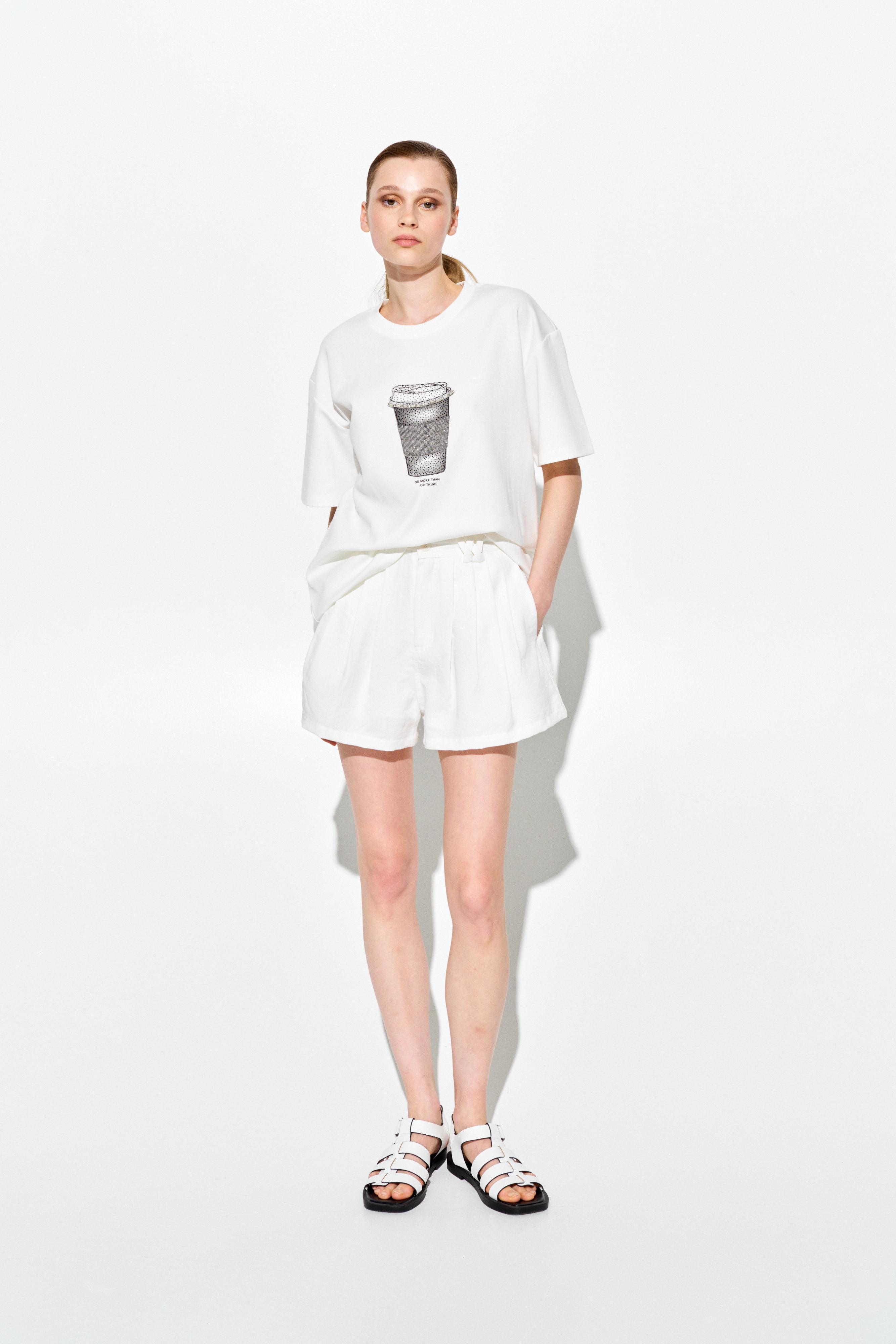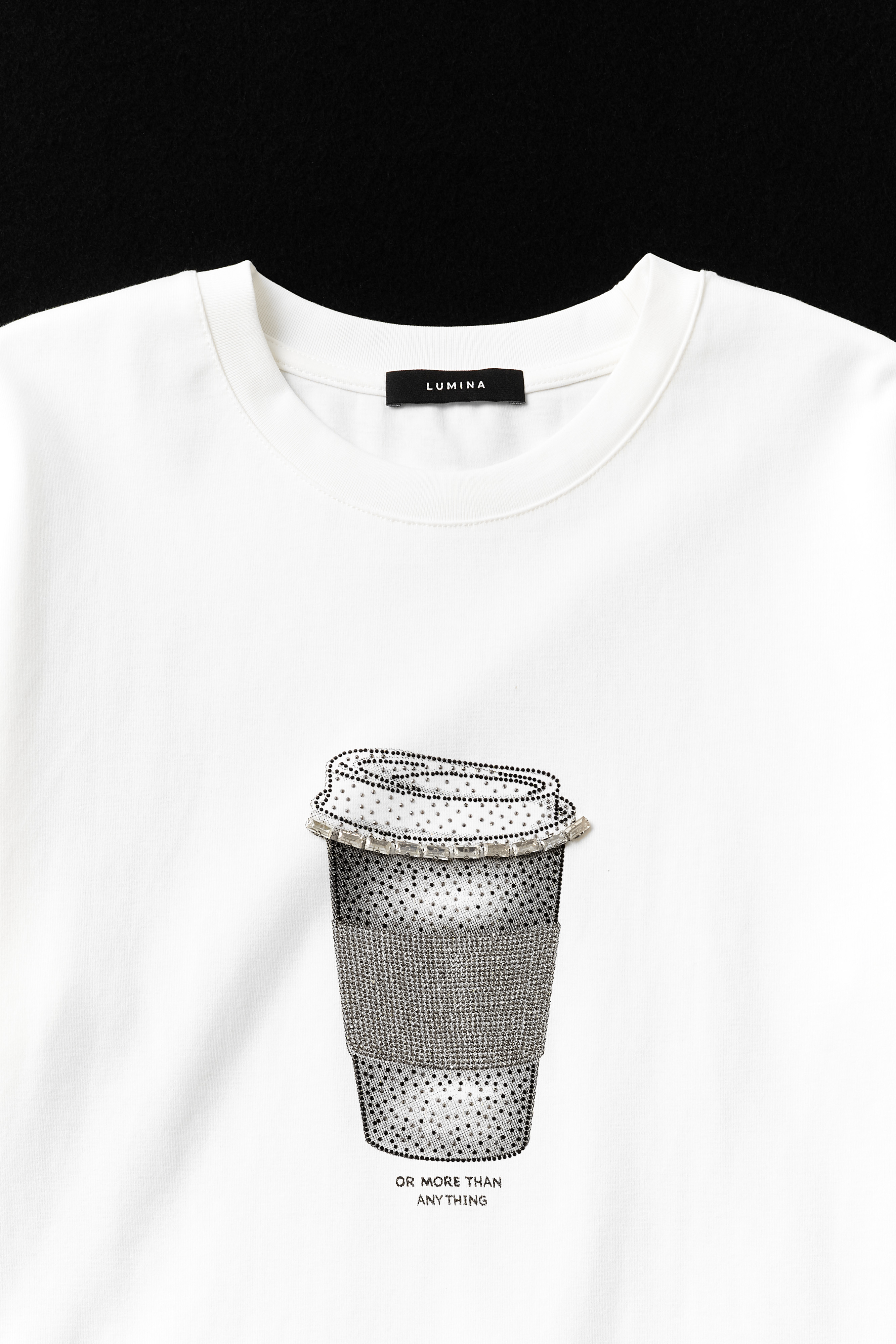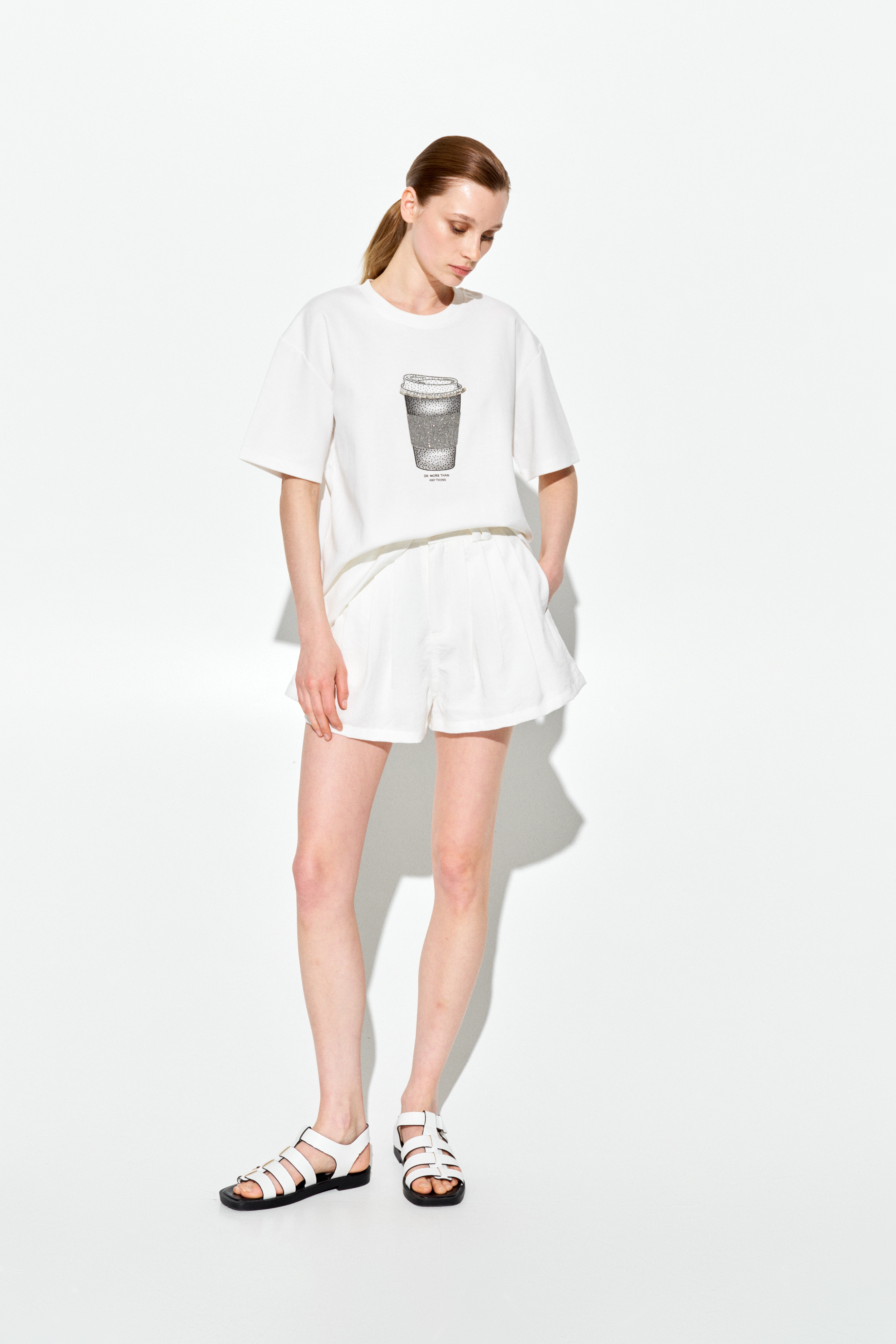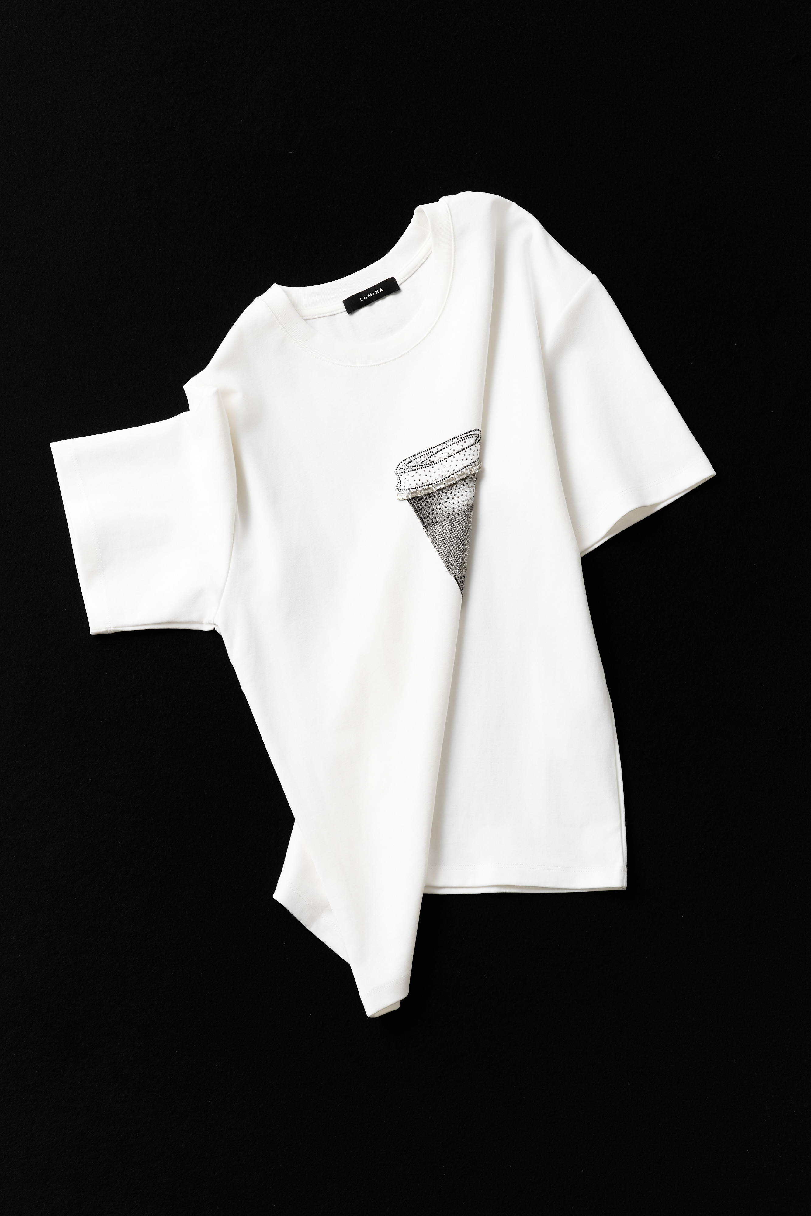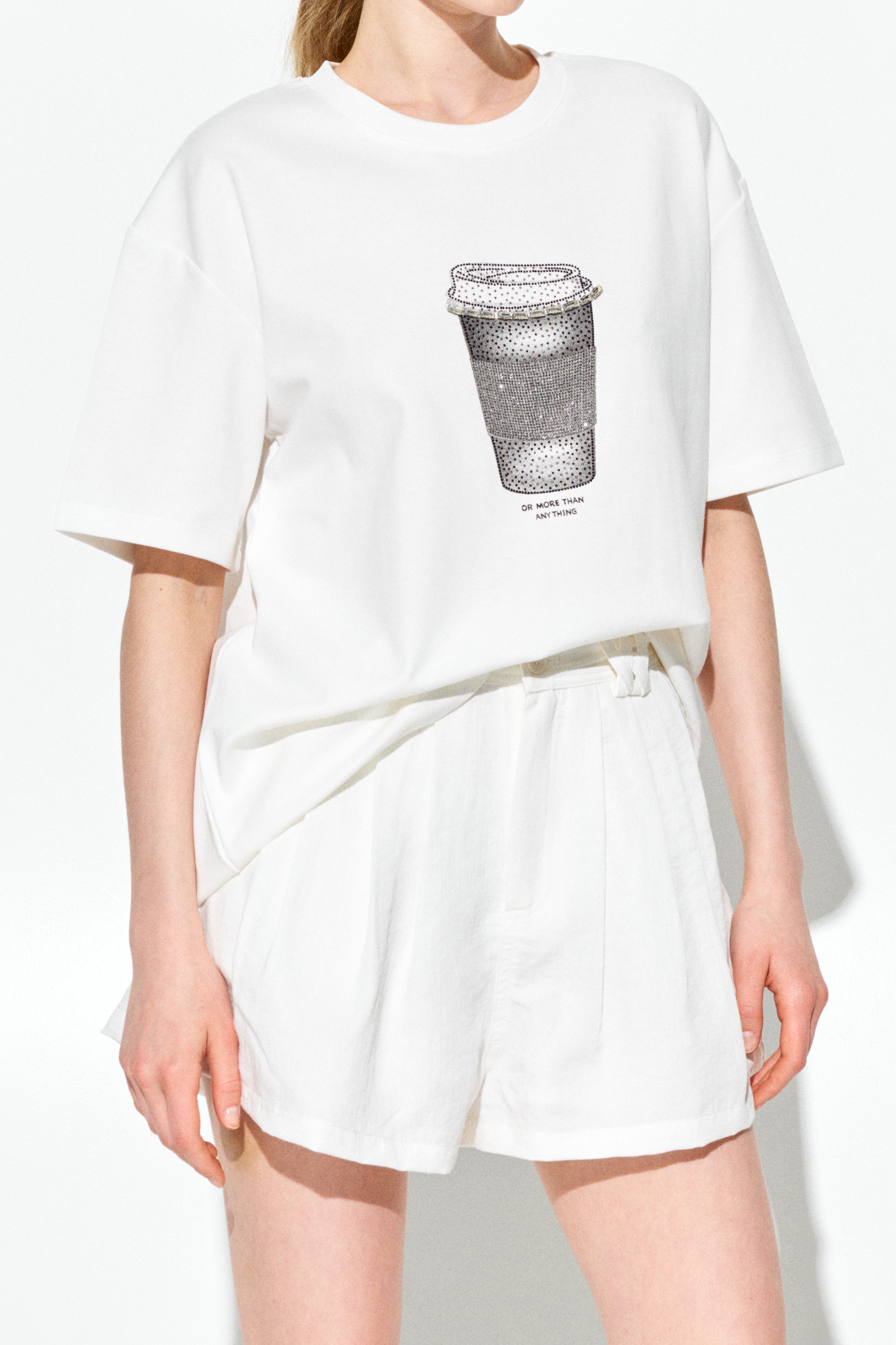 T-shirt in misto cotone con stampa e strass.