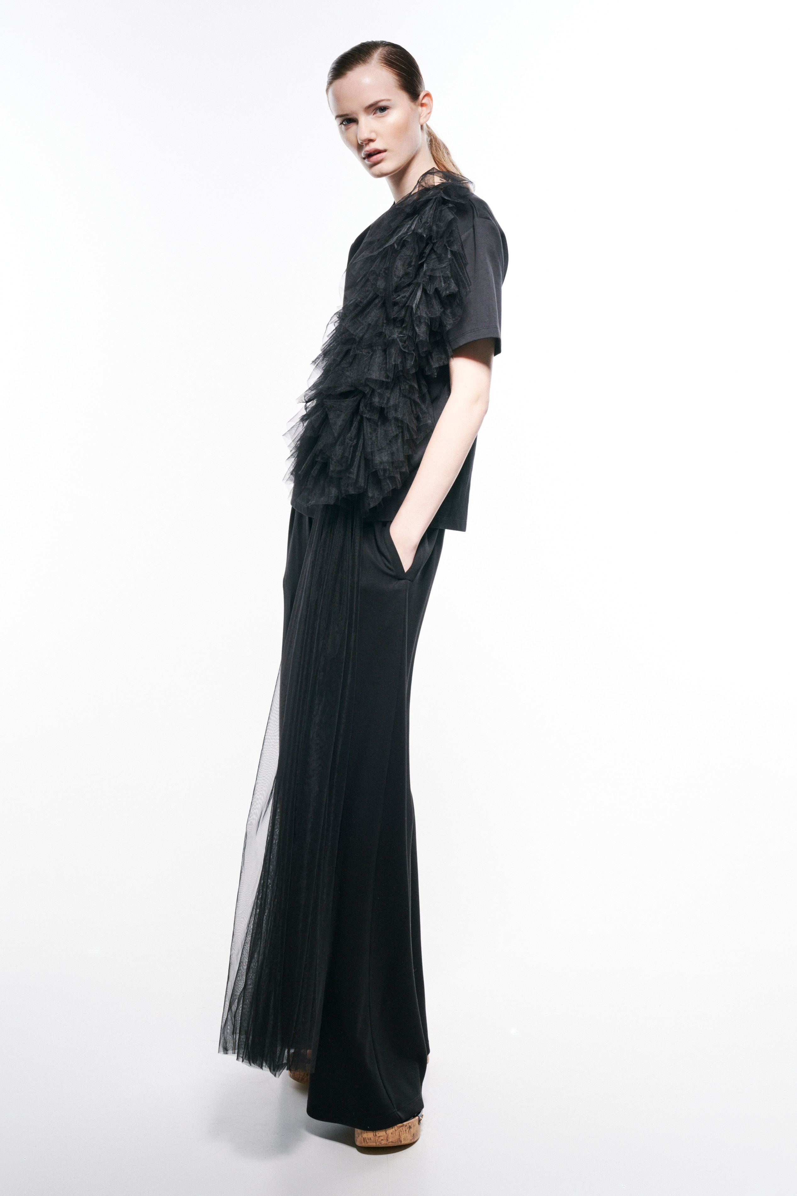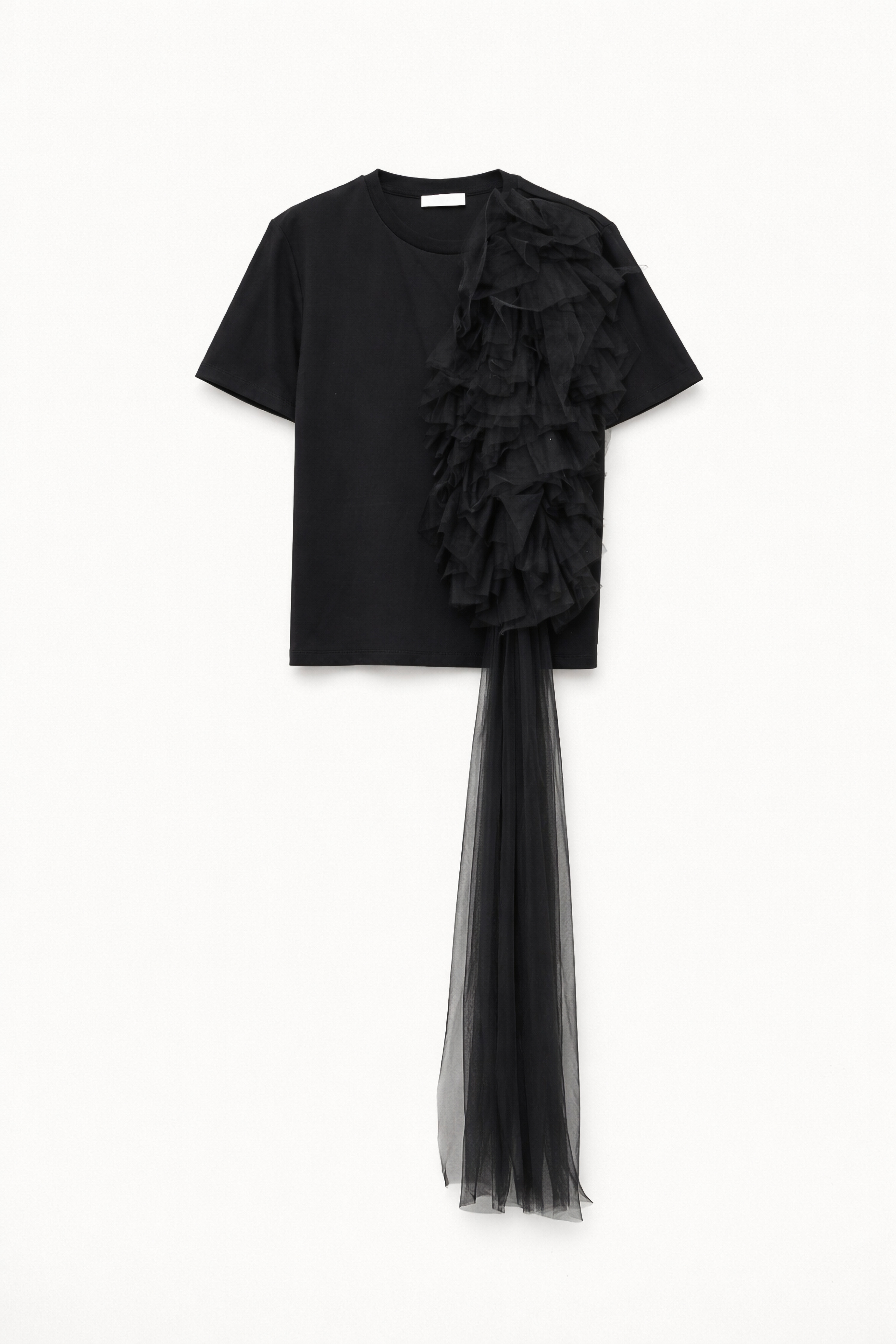 Maxi applicazione laterale di rouches in tulle.