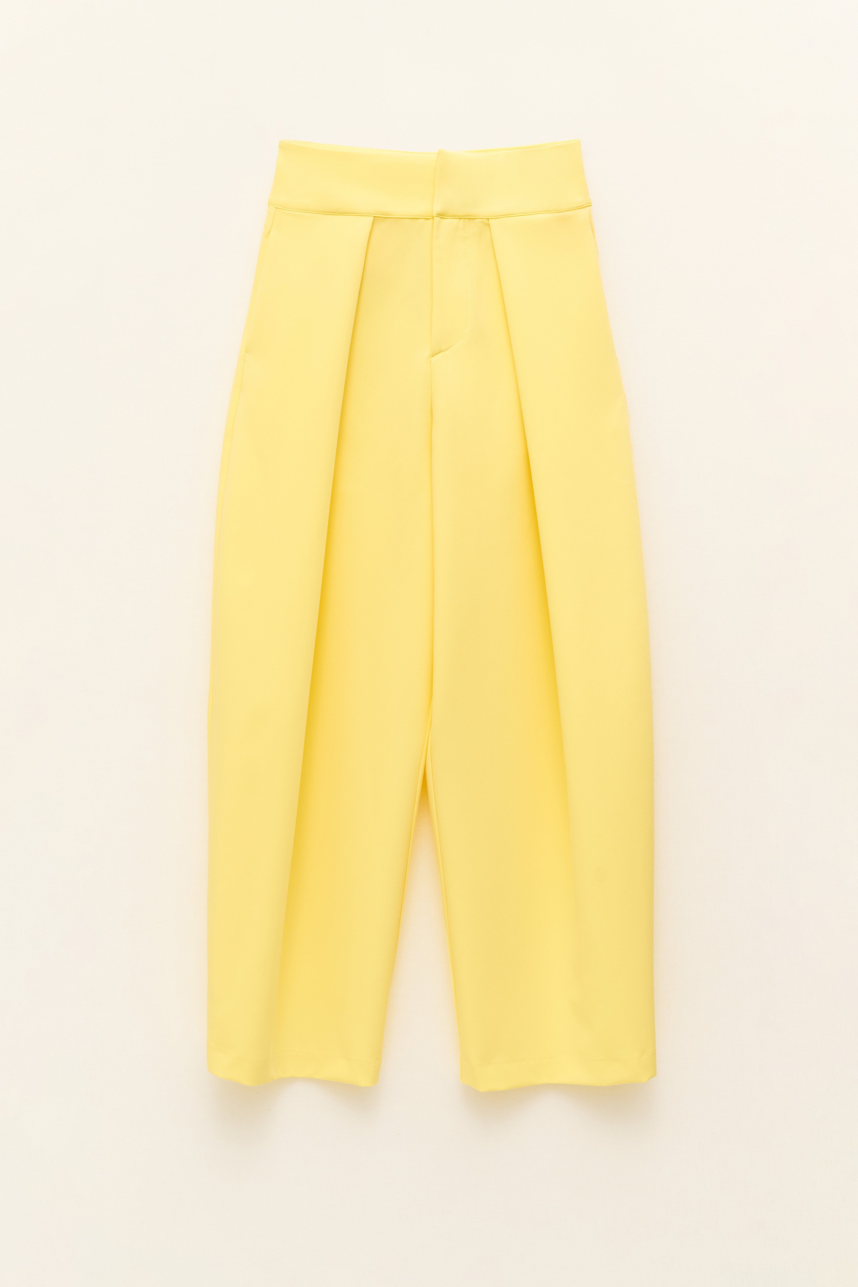 Pantaloni palazzo in tessuto semitrasparente satinato.