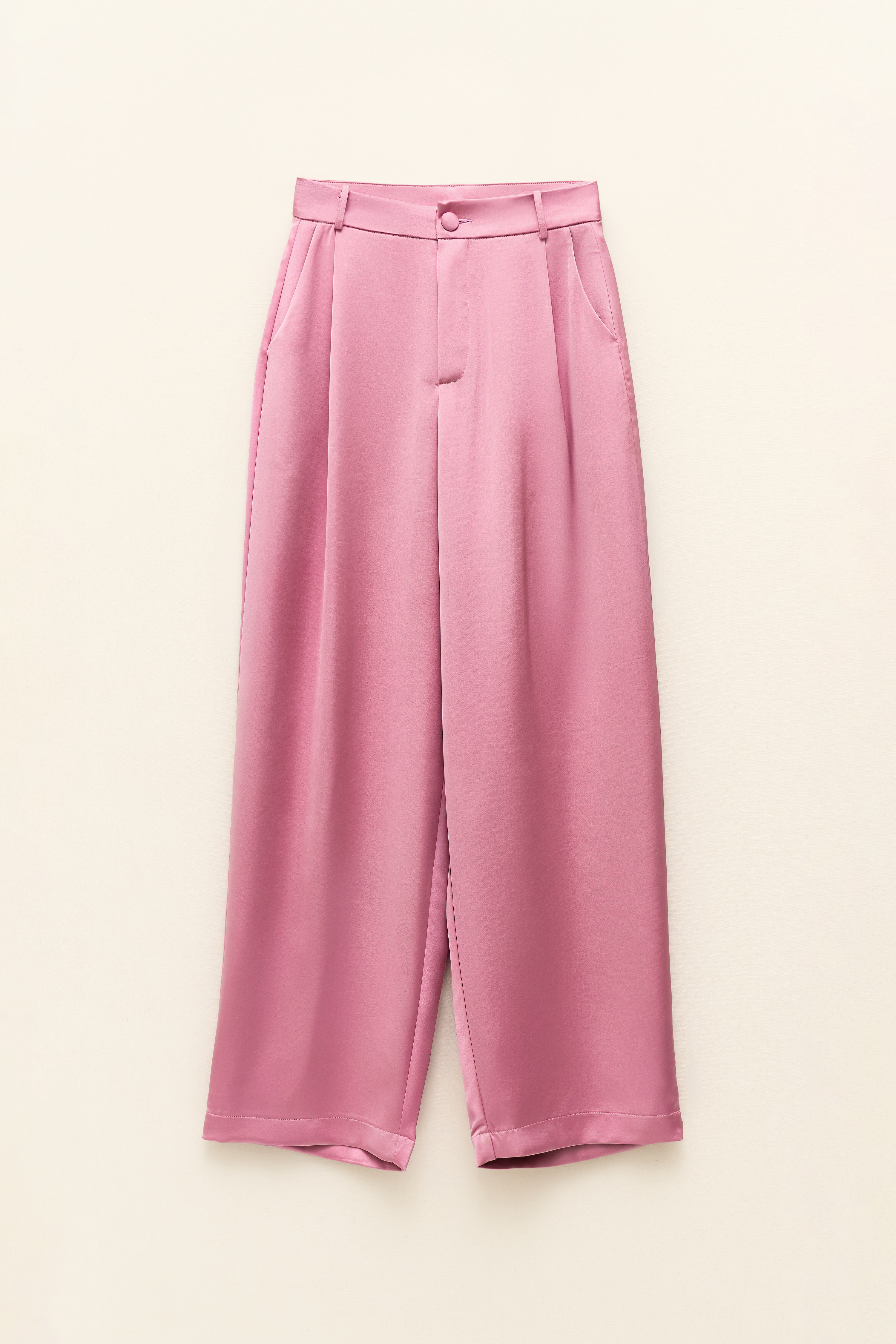 Pantaloni palazzo in tessuto semitrasparente satinato.