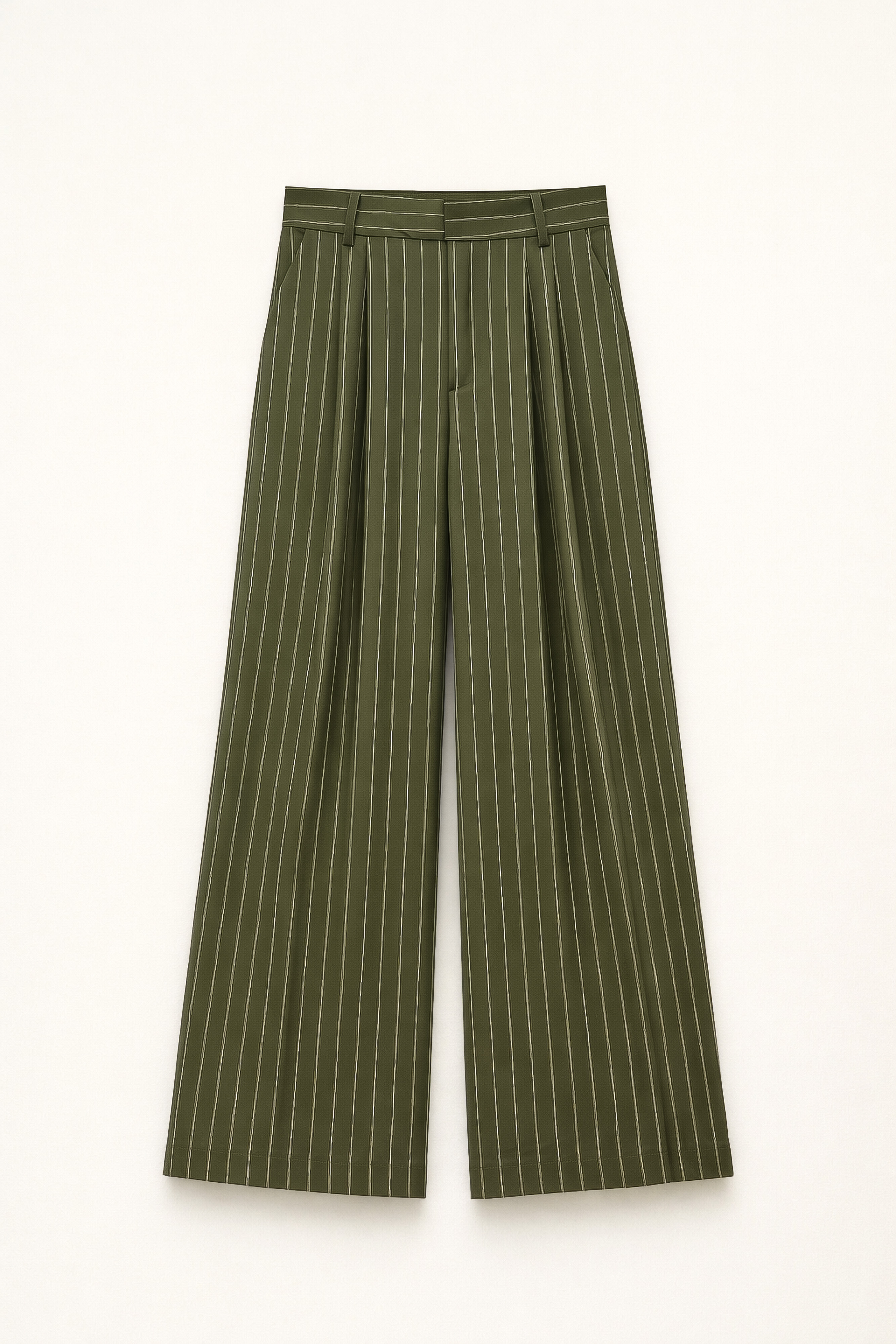 Vita alta con ampia fascia elasticizzata con arricciature.