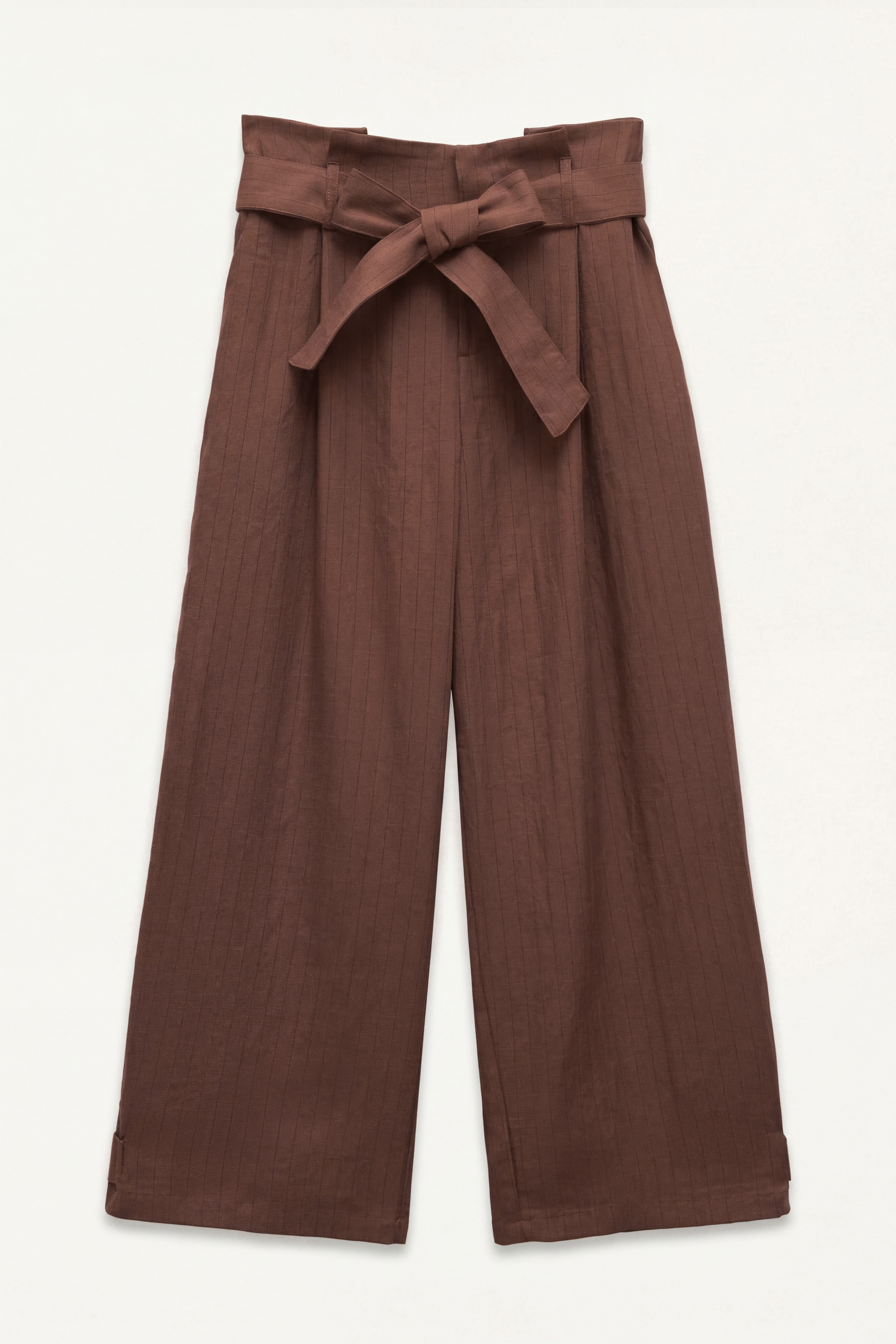 Pantaloni palazzo in tessuto semitrasparente satinato.