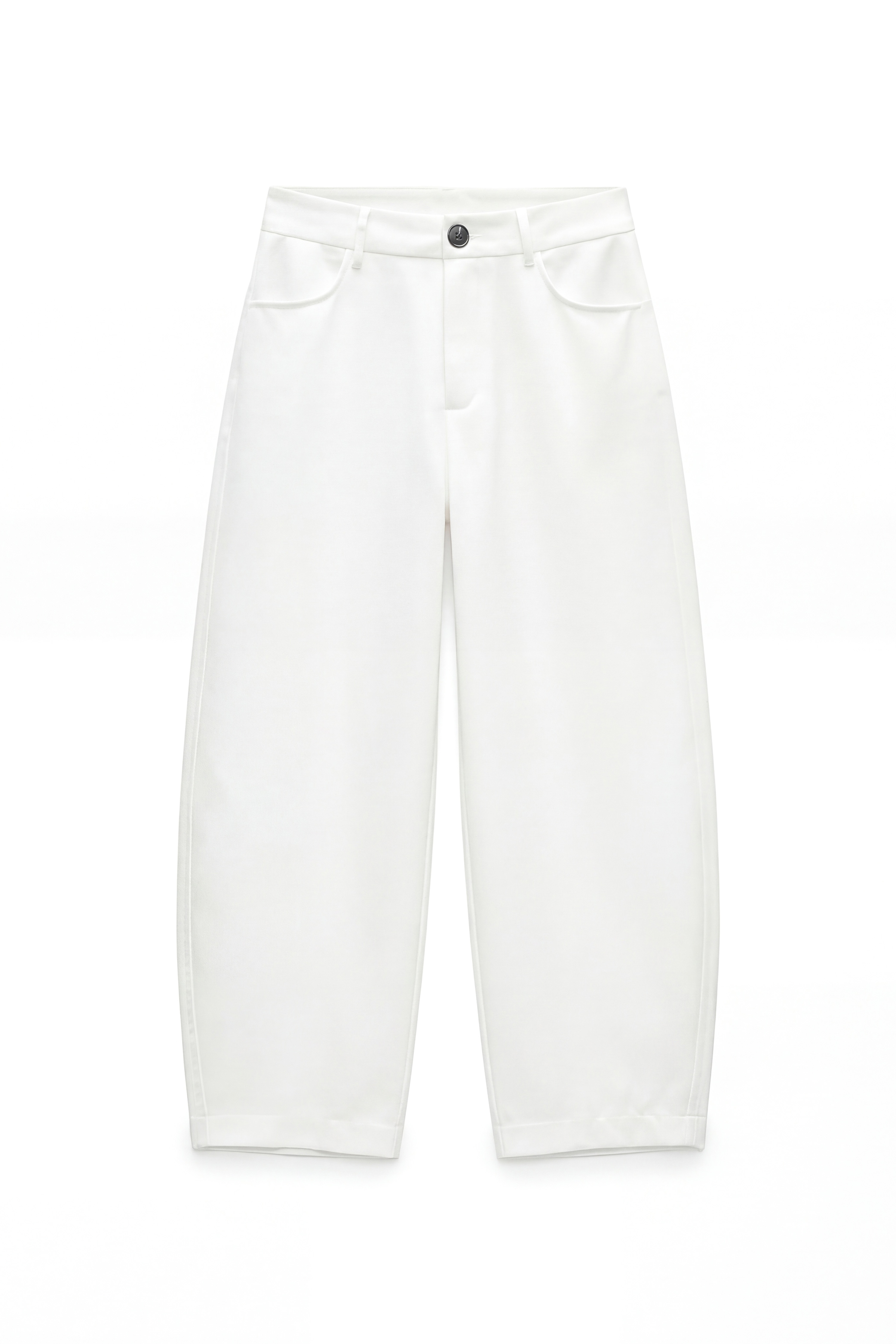 Pantaloni cropped vita alta con passanti.