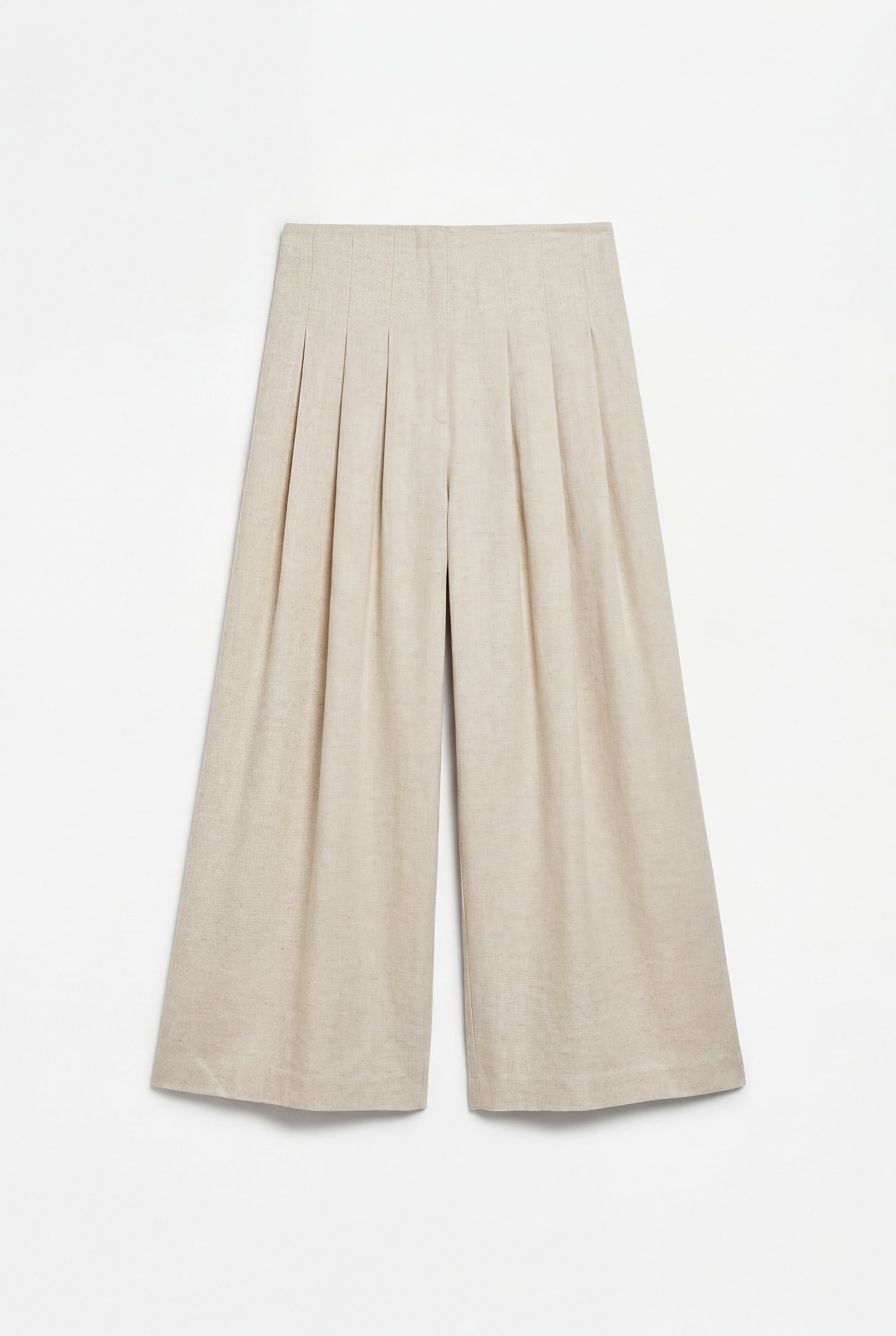 Pantaloni wide-leg in misto lino. Tasche laterali inserite funzionali. Vita elasticizzata con coulisse regolabile. Fondo con laccetti regolabili per effetto arricciato. Vestibilità regolare, disponibile in taglia S/M, M/L.