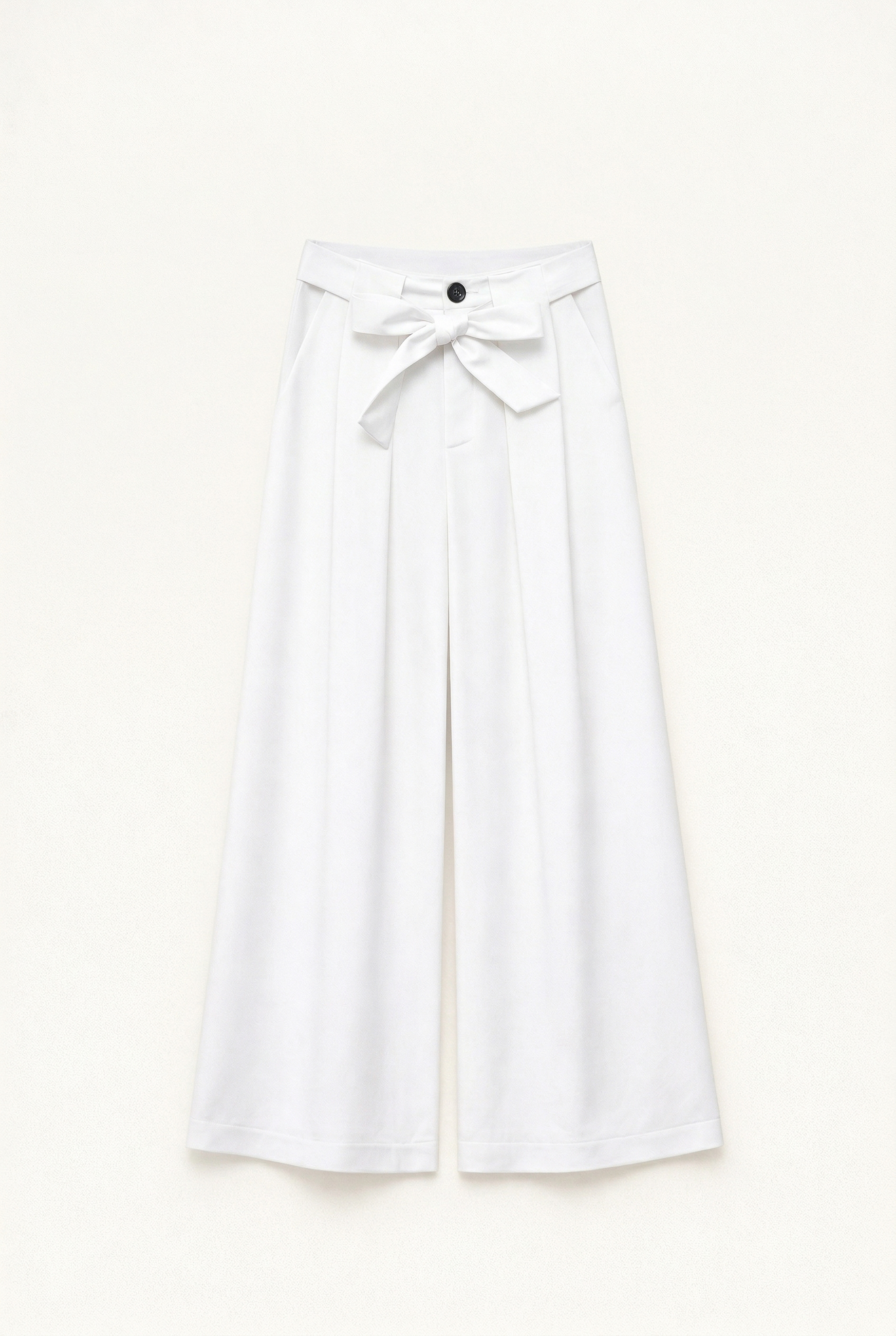 Pantaloni wide-leg in misto tencel. Vita alta strutturata. Pinces frontali. Tasche laterali inserite funzionali. Chiusura frontale con cerniera e bottone. Vestibilità regolare, disponibile in taglia S, M, L.