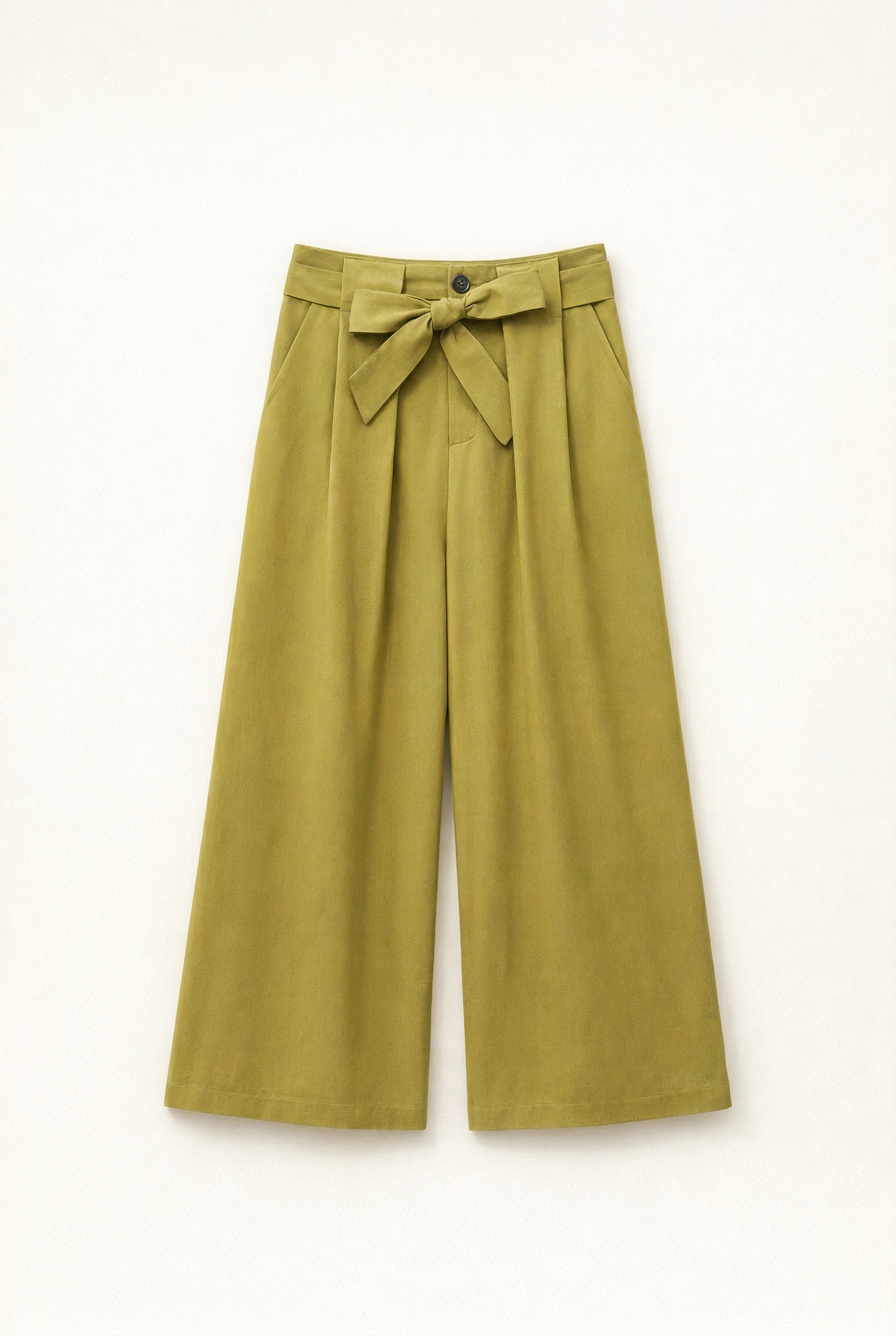 Pantaloni wide-leg in misto tencel. Vita alta strutturata. Pinces frontali. Tasche laterali inserite funzionali. Chiusura frontale con cerniera e bottone. Vestibilità regolare, disponibile in taglia S, M, L.