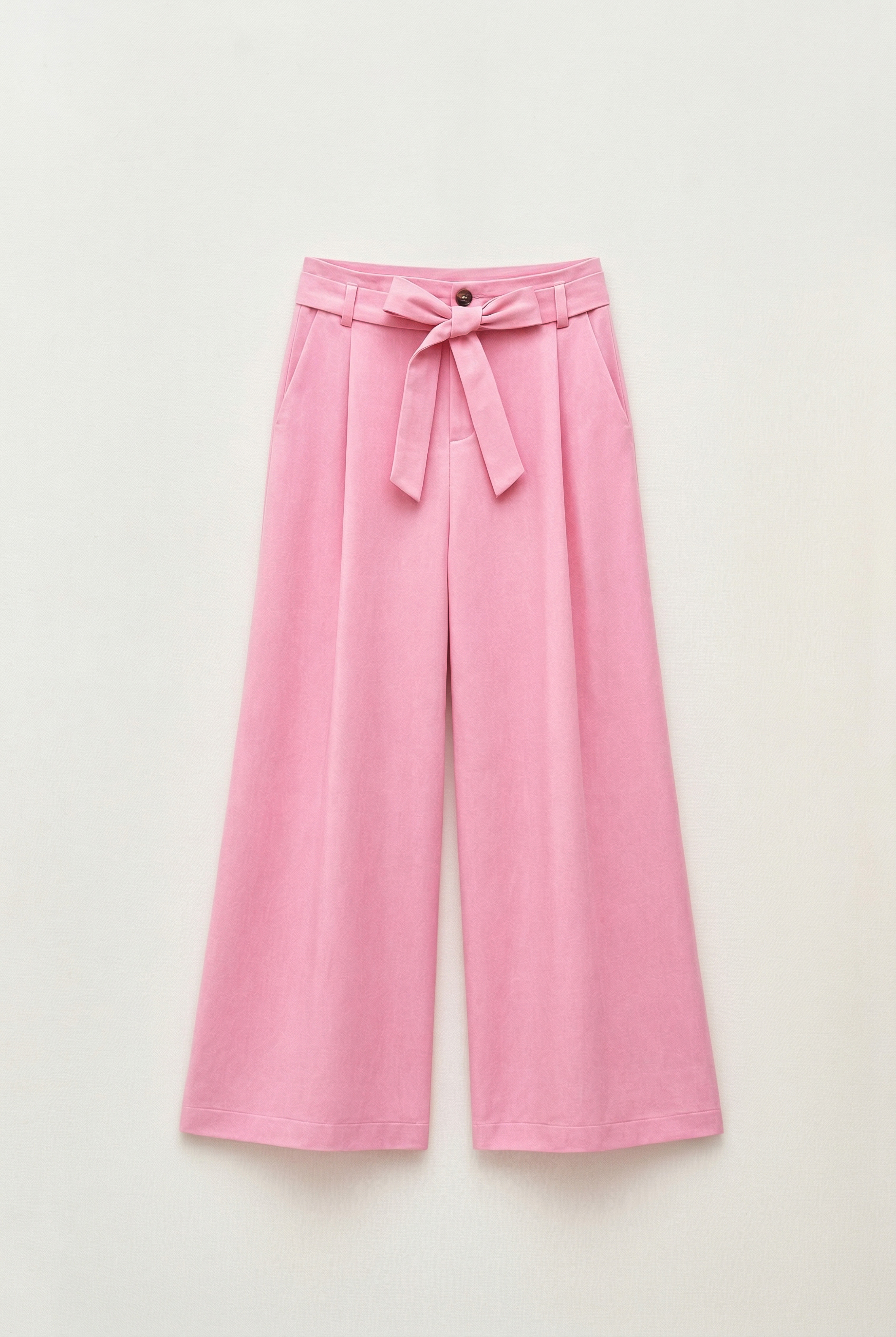 Pantaloni wide-leg in misto tencel. Vita alta strutturata. Pinces frontali. Tasche laterali inserite funzionali. Chiusura frontale con cerniera e bottone. Vestibilità regolare, disponibile in taglia S, M, L.