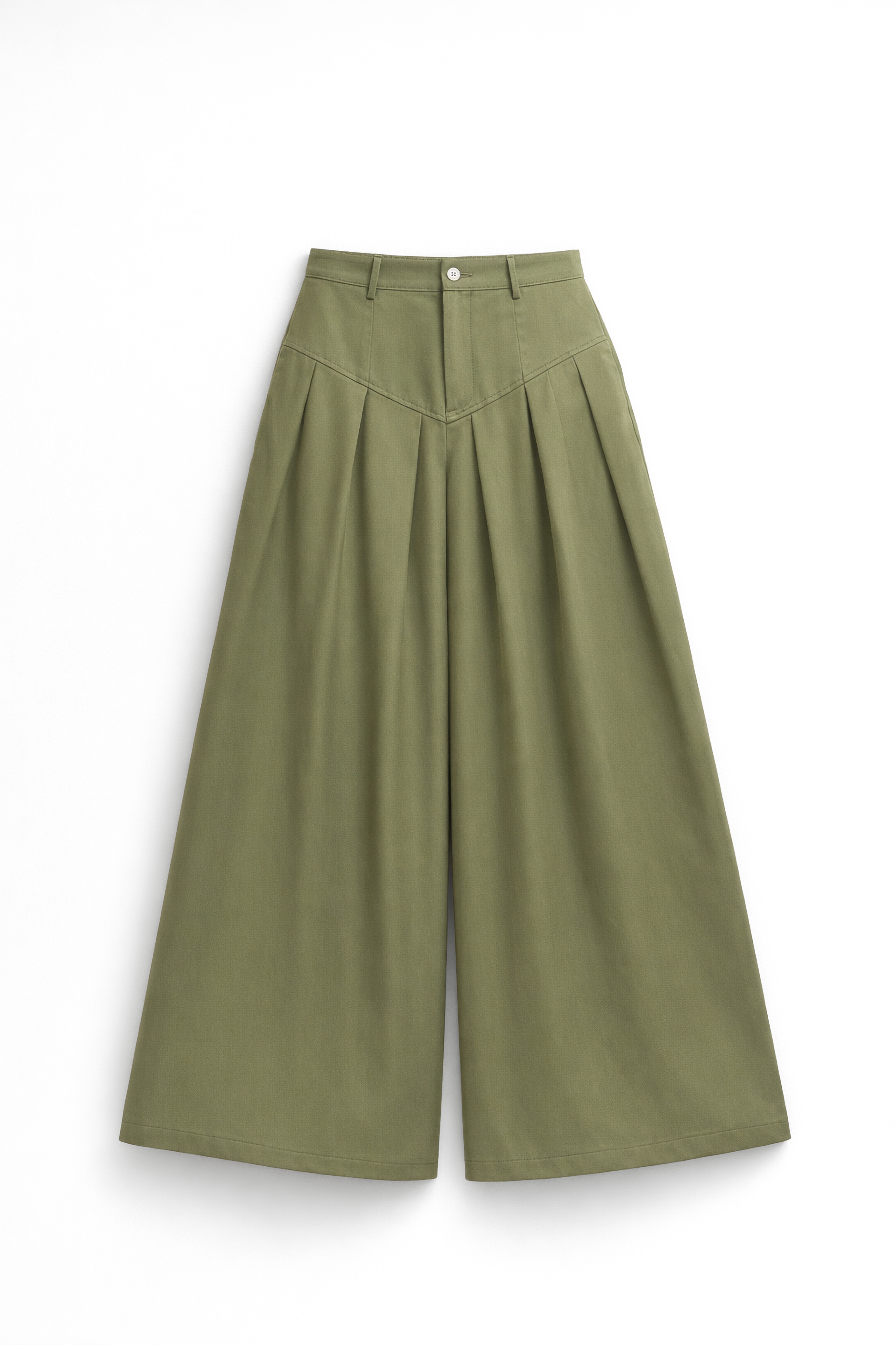 Pantaloni vita alta con fascia strutturata in misto lino.
