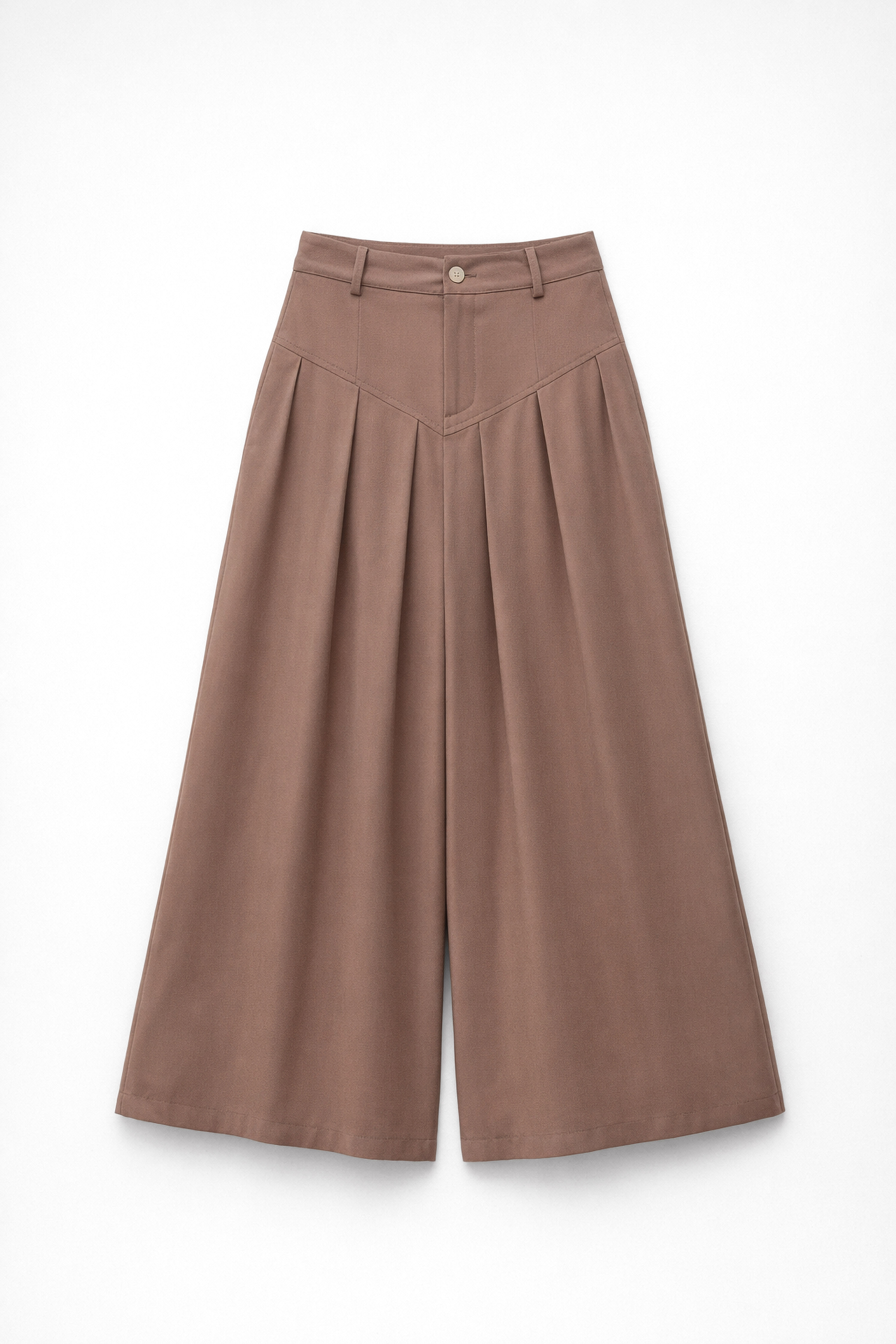 Pantaloni vita alta con fascia strutturata in misto lino.