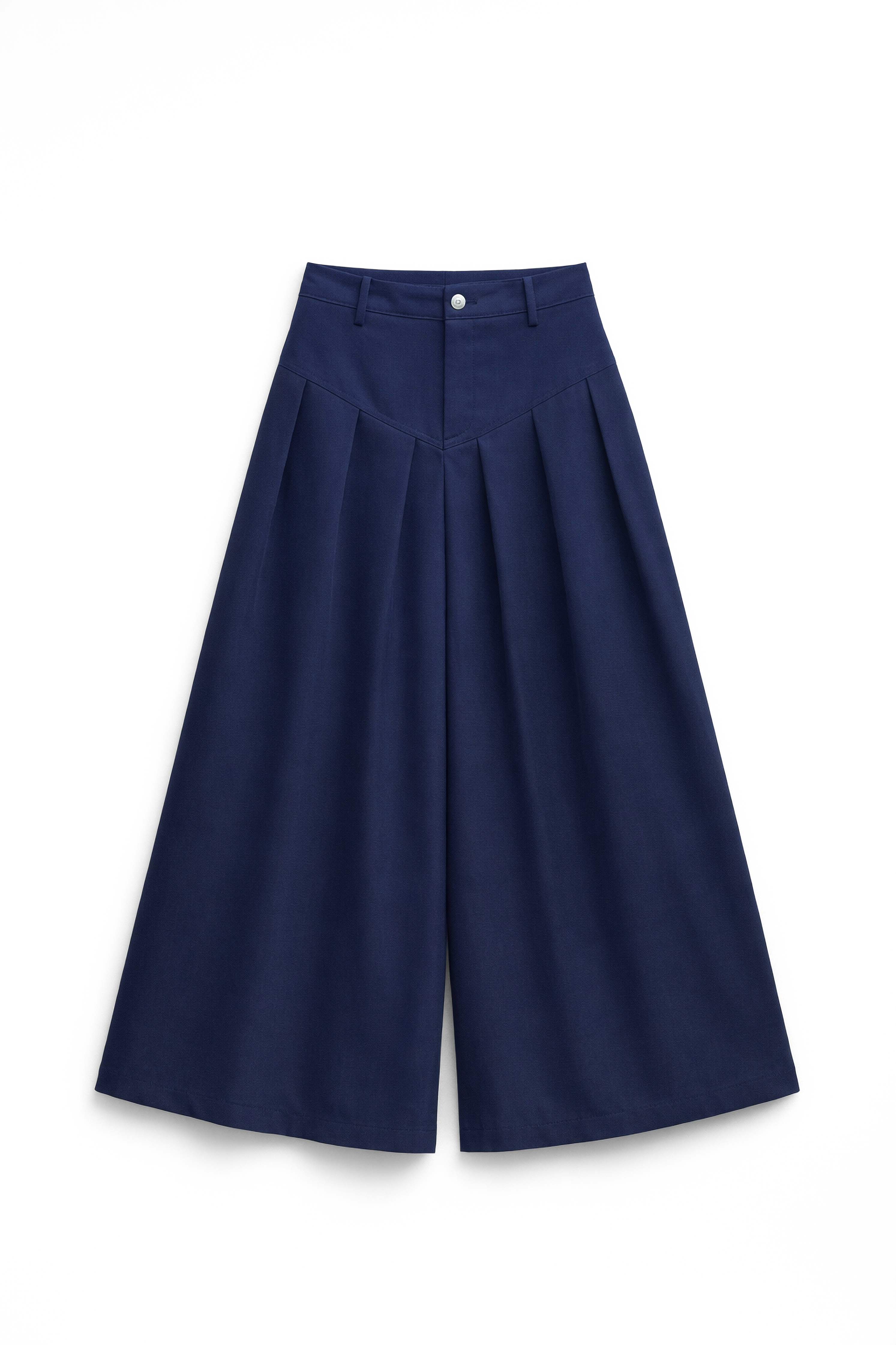 Vita alta con passanti per cintura. Pinces frontali.