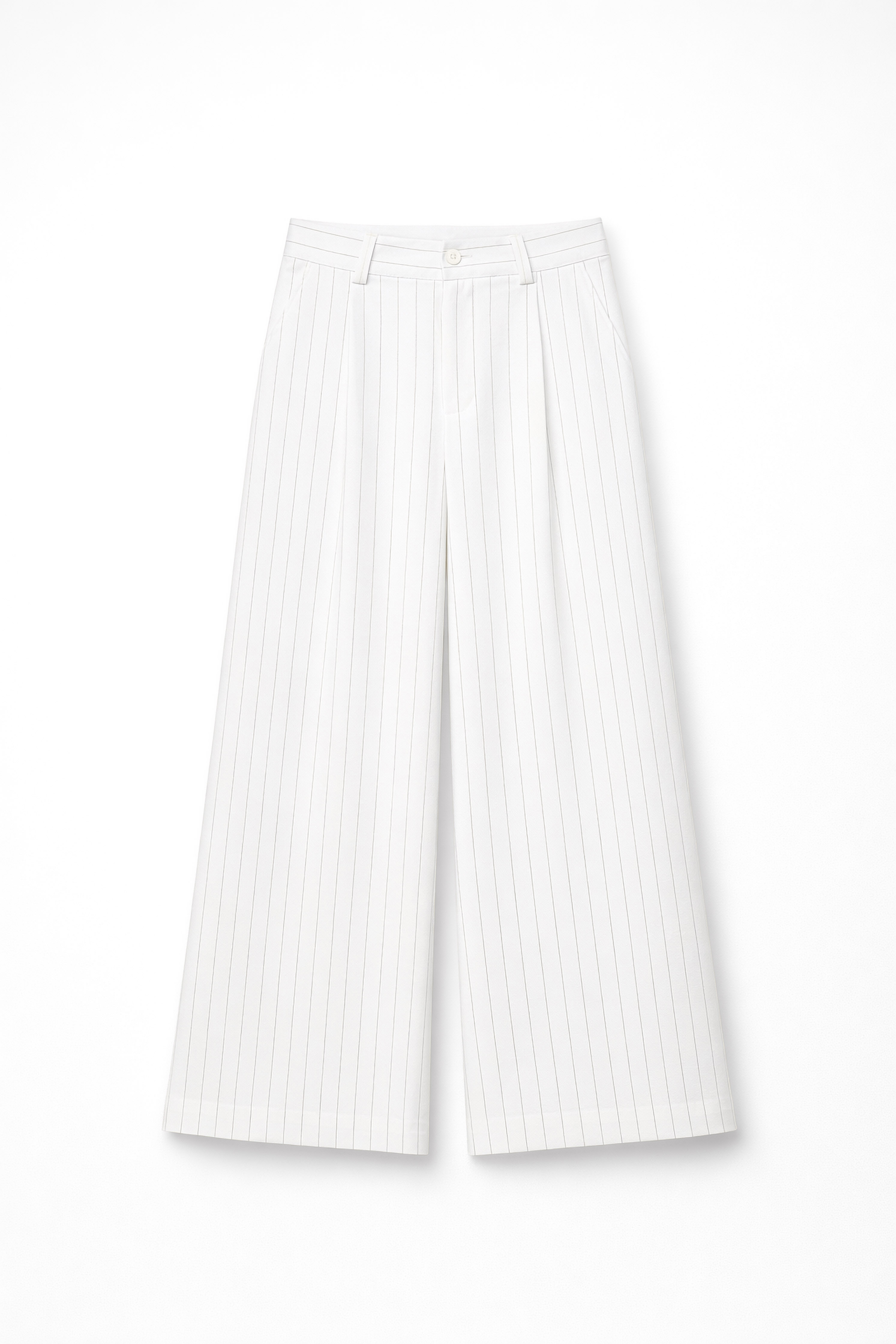 Pantaloni gessati con motivo a righe sottili.
