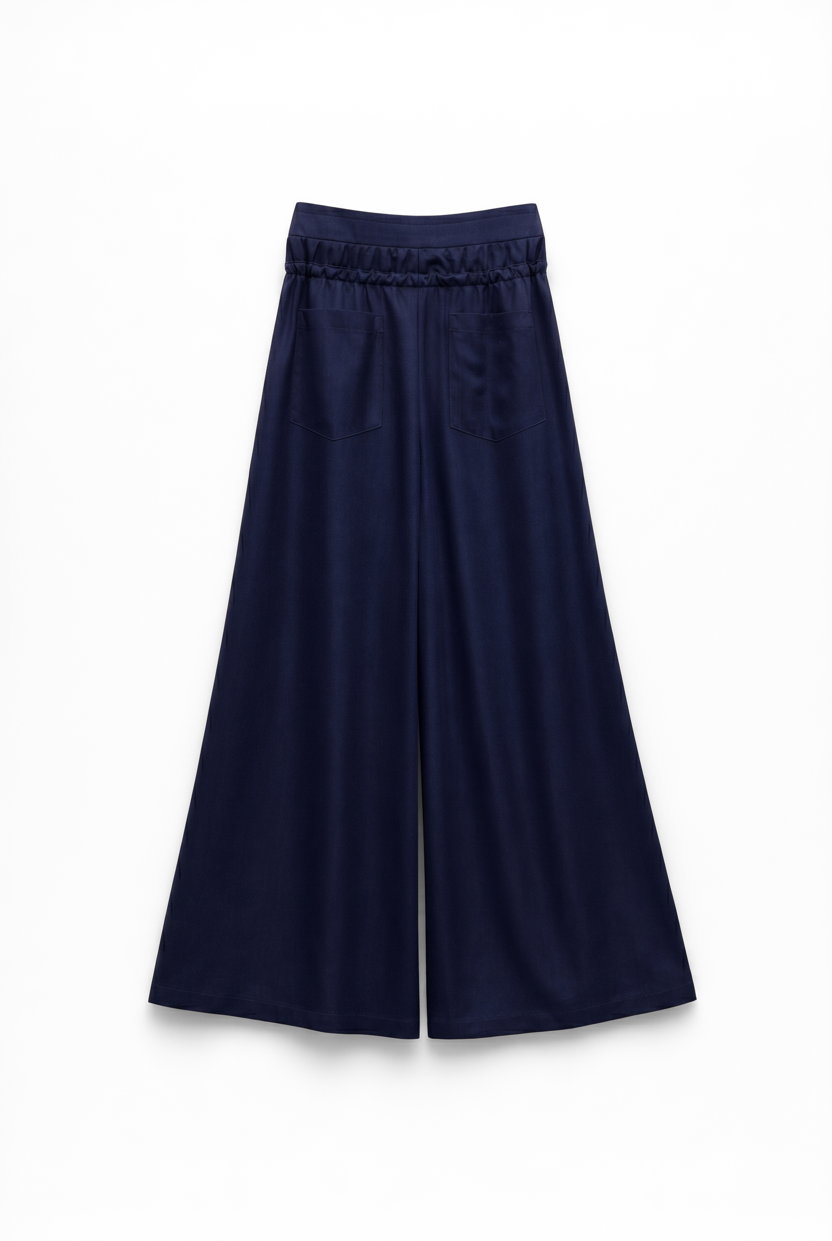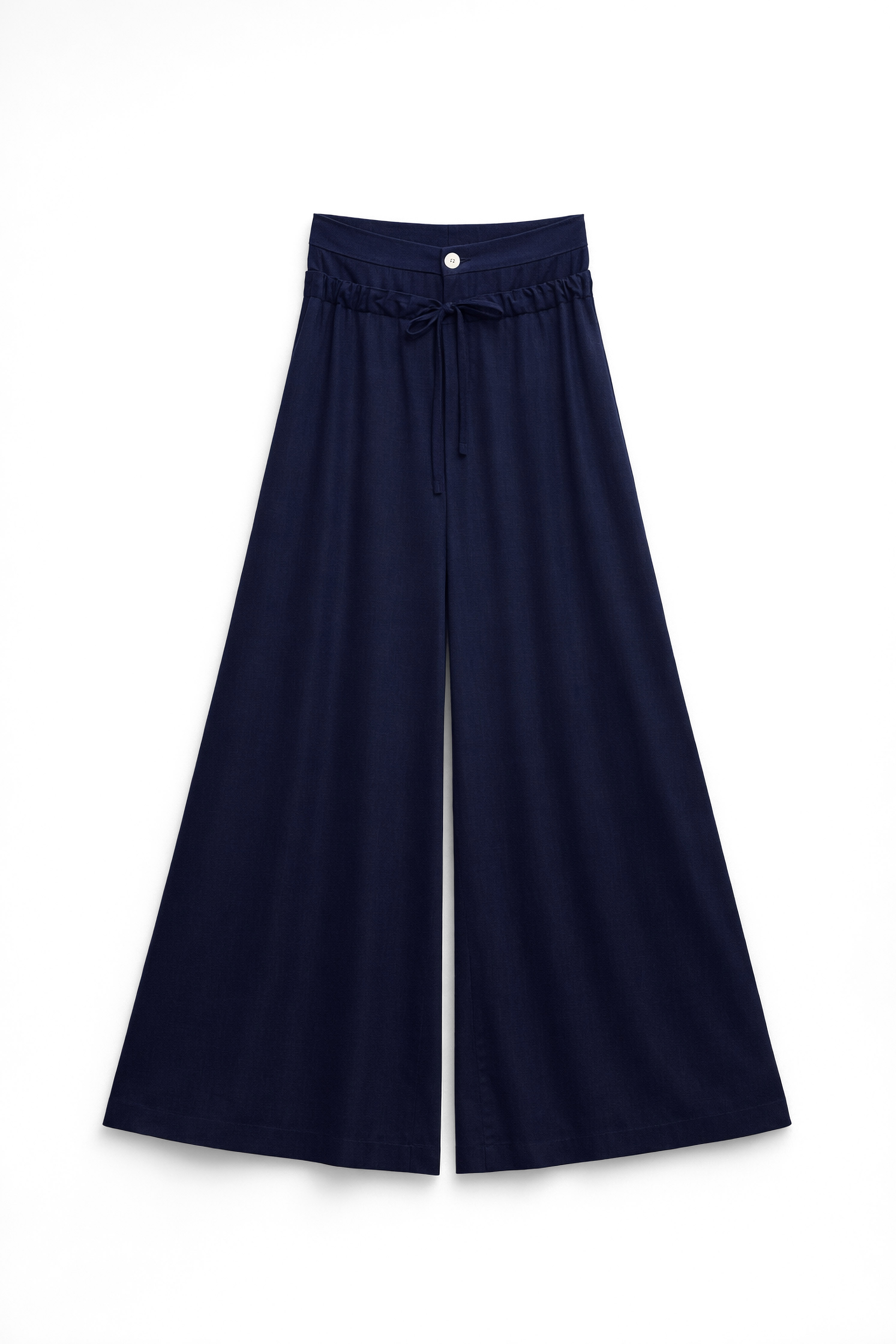 Pantaloni palazzo wide-leg in misto lyocell. Vita elasticizzata con coulisse regolabile. Tasche laterali inserite nei fianchi. Vestibilità regolare, disponibile in taglia S/M, M/L.