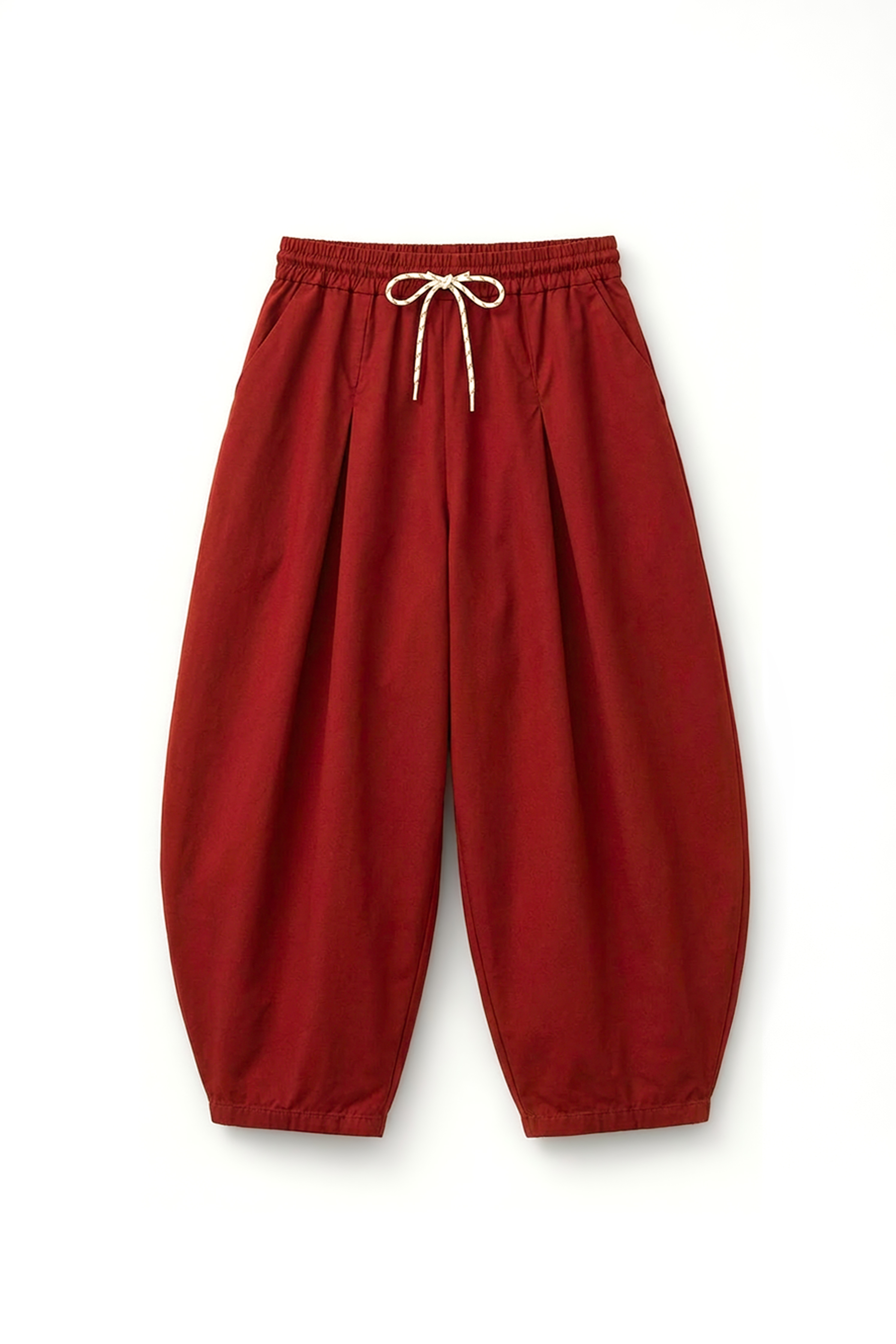 Pantaloni wide-leg in cotone elasticizzato. Vita alta elasticizzata con coulisse regolabile. Tasche laterali inserite. Presenta pinces frontali. Vestibilità regolare, disponibile in taglia S/M, M/L.