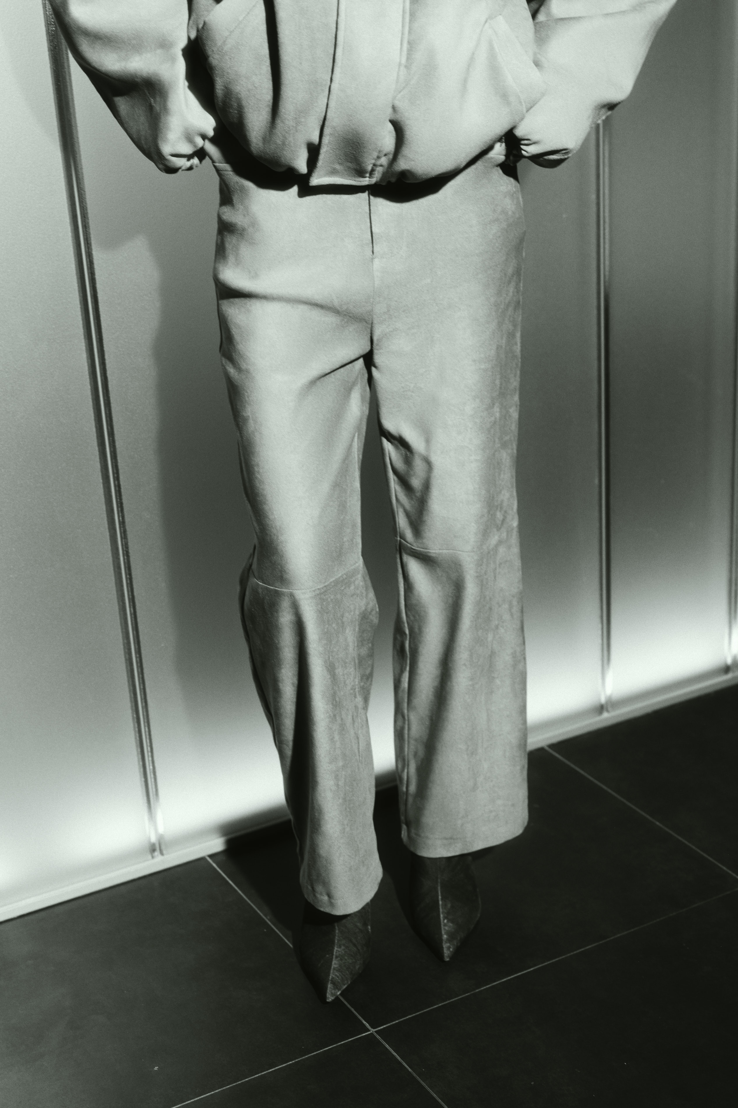 Dettaglio arricciature sul ginocchio.