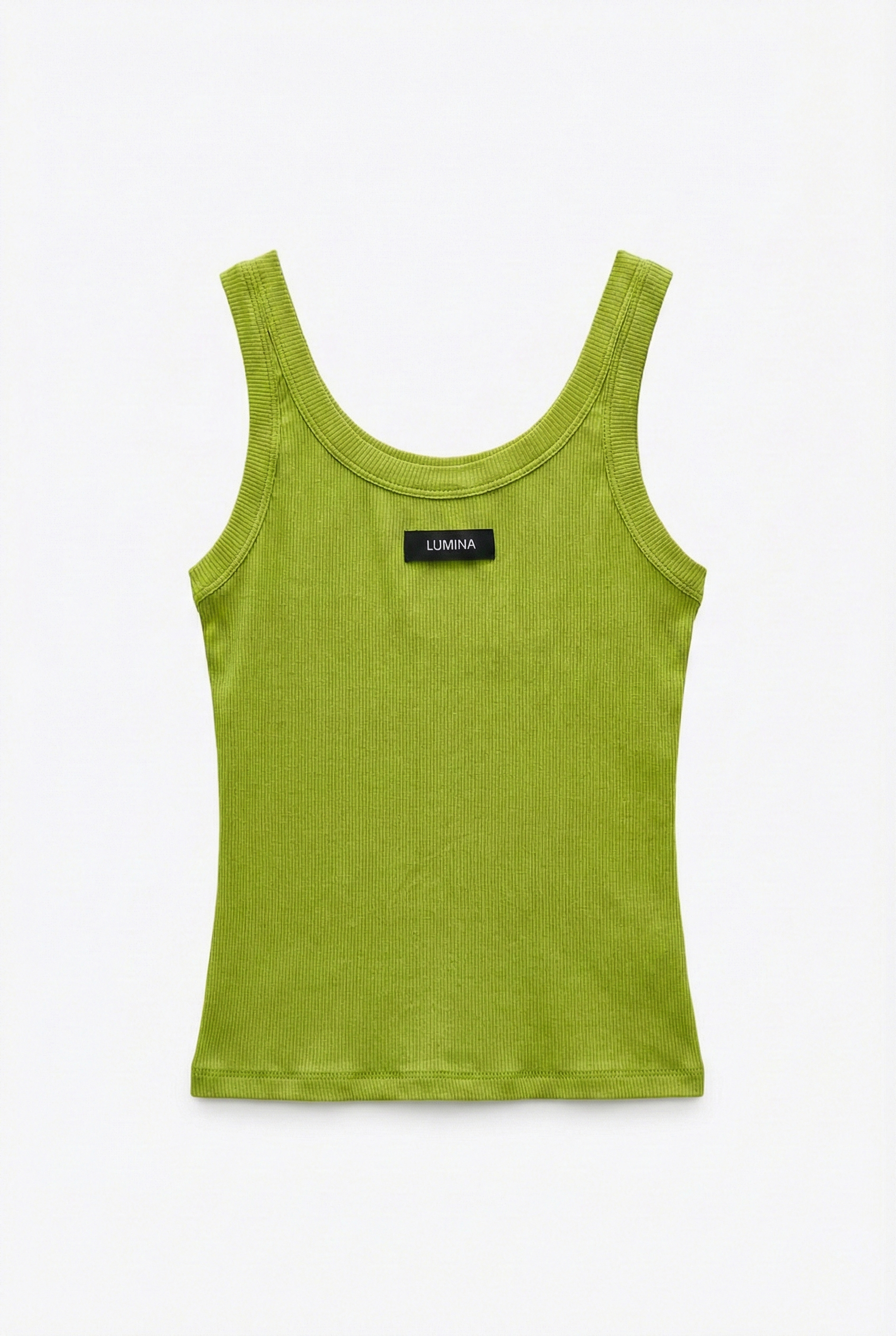 Canotta crop a costine con scollo ampio arrotondato.