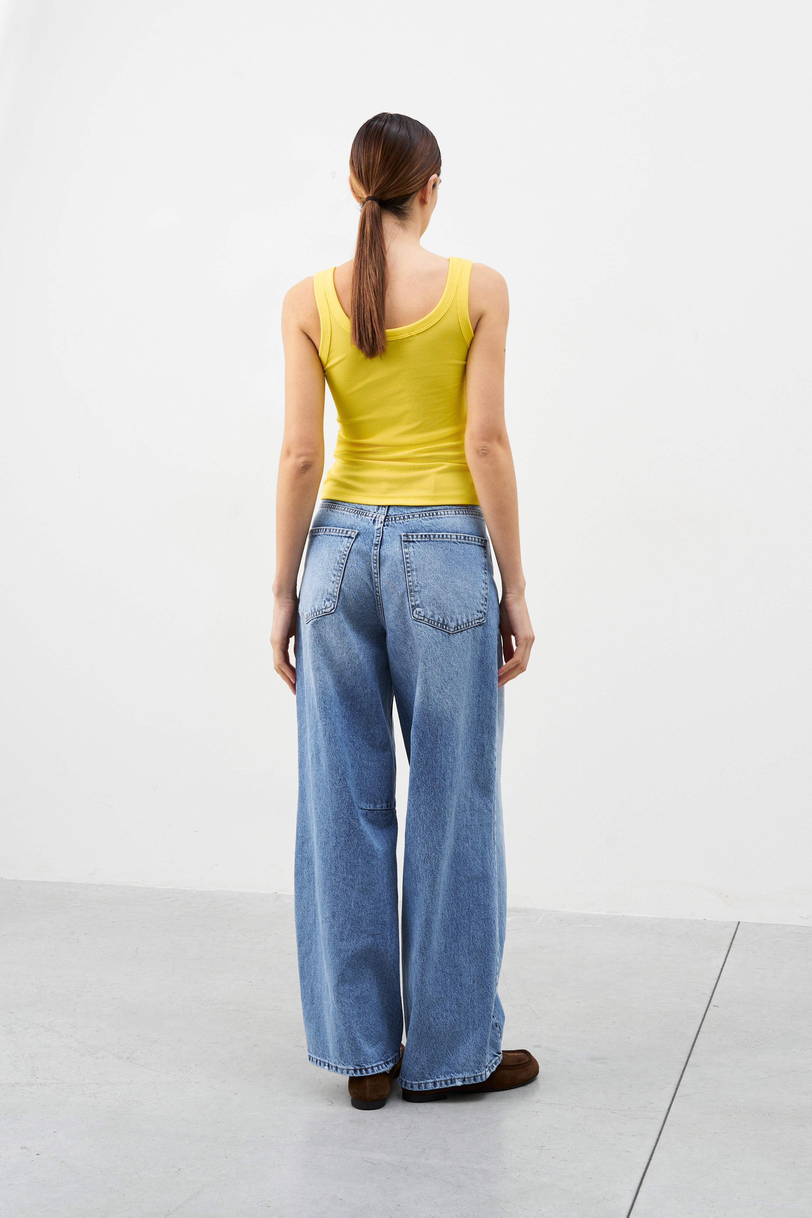 Canotta crop a costine con scollo ampio arrotondato. Coppe interne integrate per maggiore sostegno. Vestibilità regolare, disponibile in taglia S/M, M/L.