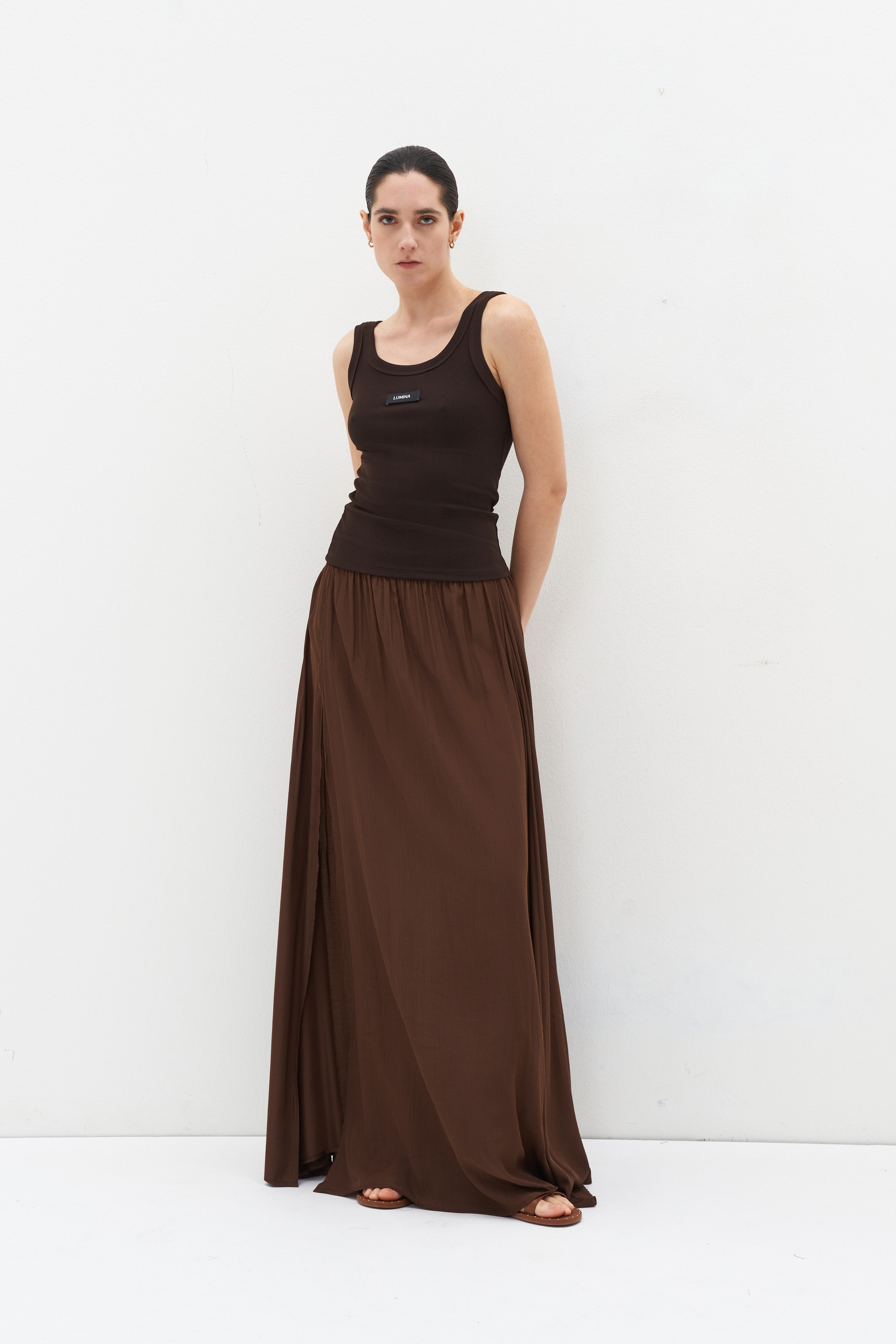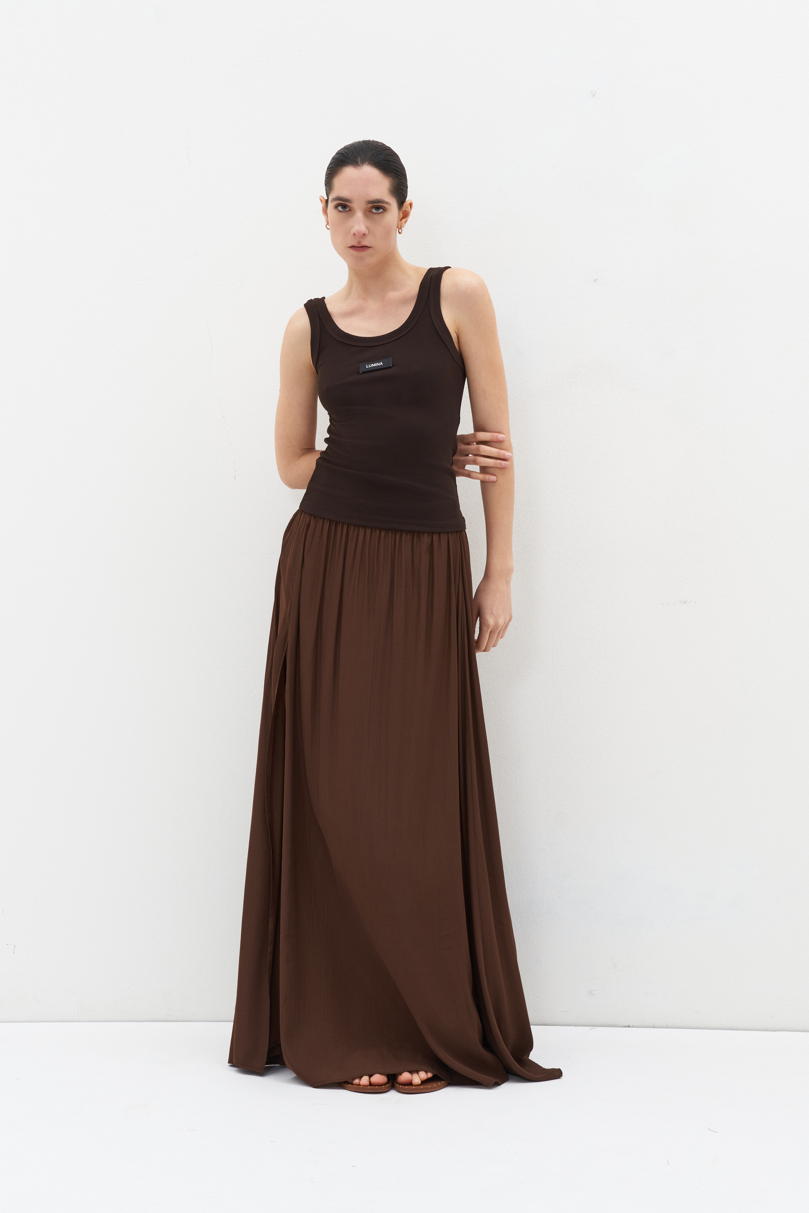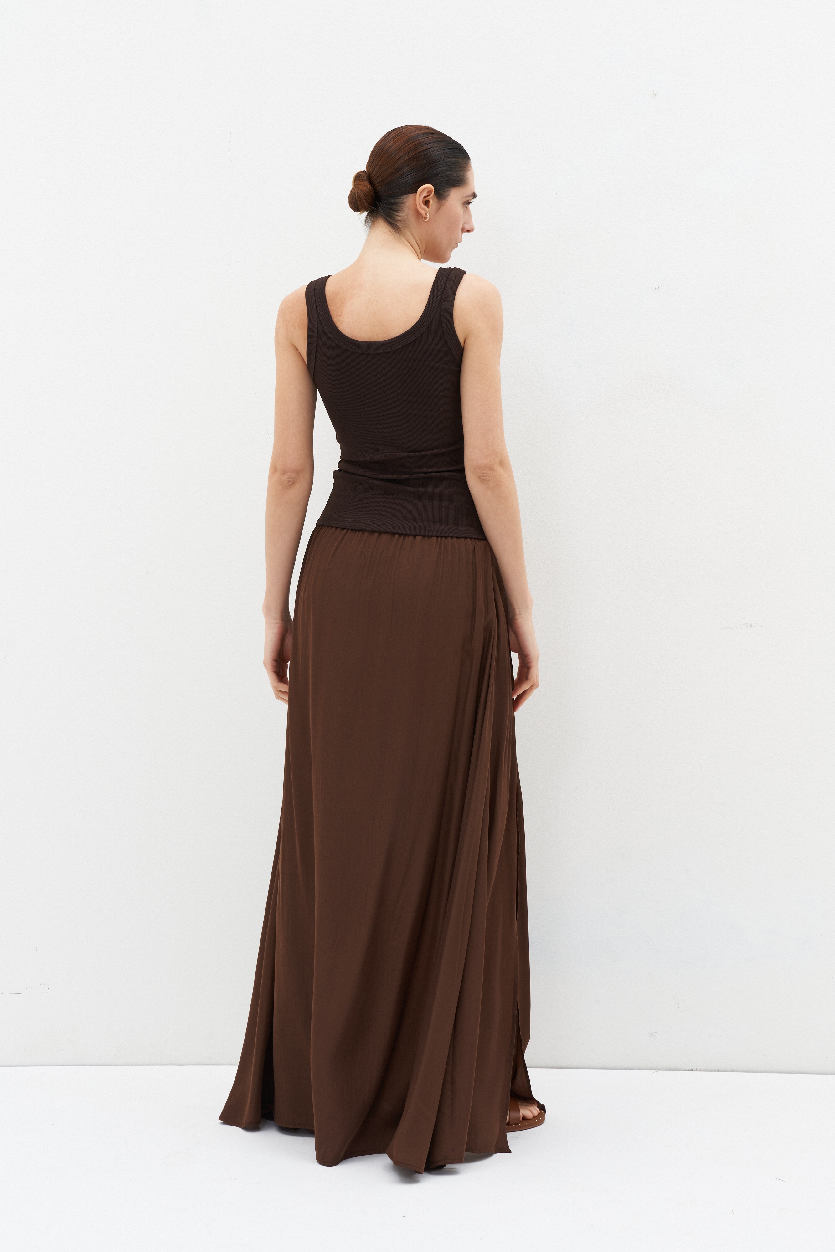 Top asimmetrico in tessuto satinato 100% viscosa.